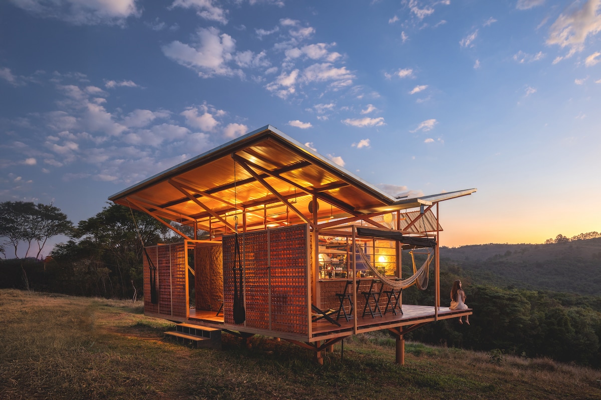 A Casa Igarapé é uma cabana ecológica no pé da Serra de Igarapé, feita com terra crua, aço, madeira e cerâmica. O refúgio se integra ao ambiente: da varanda ou do spa você tem vista aberta para as colinas, com intenso pôr do sol e céu estrelado sem as luzes da cidade. Tudo é silêncio, quebrado só por tucanos e siriemas. Boa para trabalho remoto com concentração. Entre Itaúna e Inhotim, é ideal para casais românticos de Belo Horizonte e região ou de outras cidades, à procura de paz e aconchego.