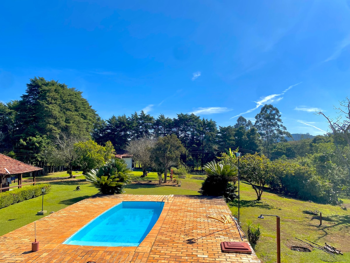 Local tranquilo cercada pela natureza. Ótimo para descansar e lazer com a família. A propriedade fica localizada a 9 km do centro da cidade, sendo 6 km de estrada de chão bem conservada. Casa ampla e confortável comportando 12 hóspedes a vontade. Casa sede 3 quartos com suítes, sala de estar, lareira, cozinha interna. 3 chalés com suítes Espaço Cozinha externa Piscina Churrasqueira Fogão a lenha Sinuca Ping pong
