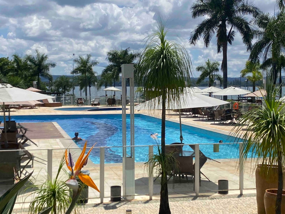 A margem do Lago Paranoá - O Resort é lindo e com muitas coisas para fazer; - Jardins paisagísticos e um ambiente de férias relaxante; - Comodidades como restaurantes, lavanderia, cafeteria, loja de conveniência, pizzaria e salão de beleza; - Academia, (Serviço terceirizado) são pagos a parte, pelo hóspede. - Estacionamento fechado; - Segurança 24 horas; - Roupas de cama e toalhas novas e de ótima qualidade; - Cortinas com blackout; - Mini cozinha com geladeira - Wi-Fi ; - TV a cabo;