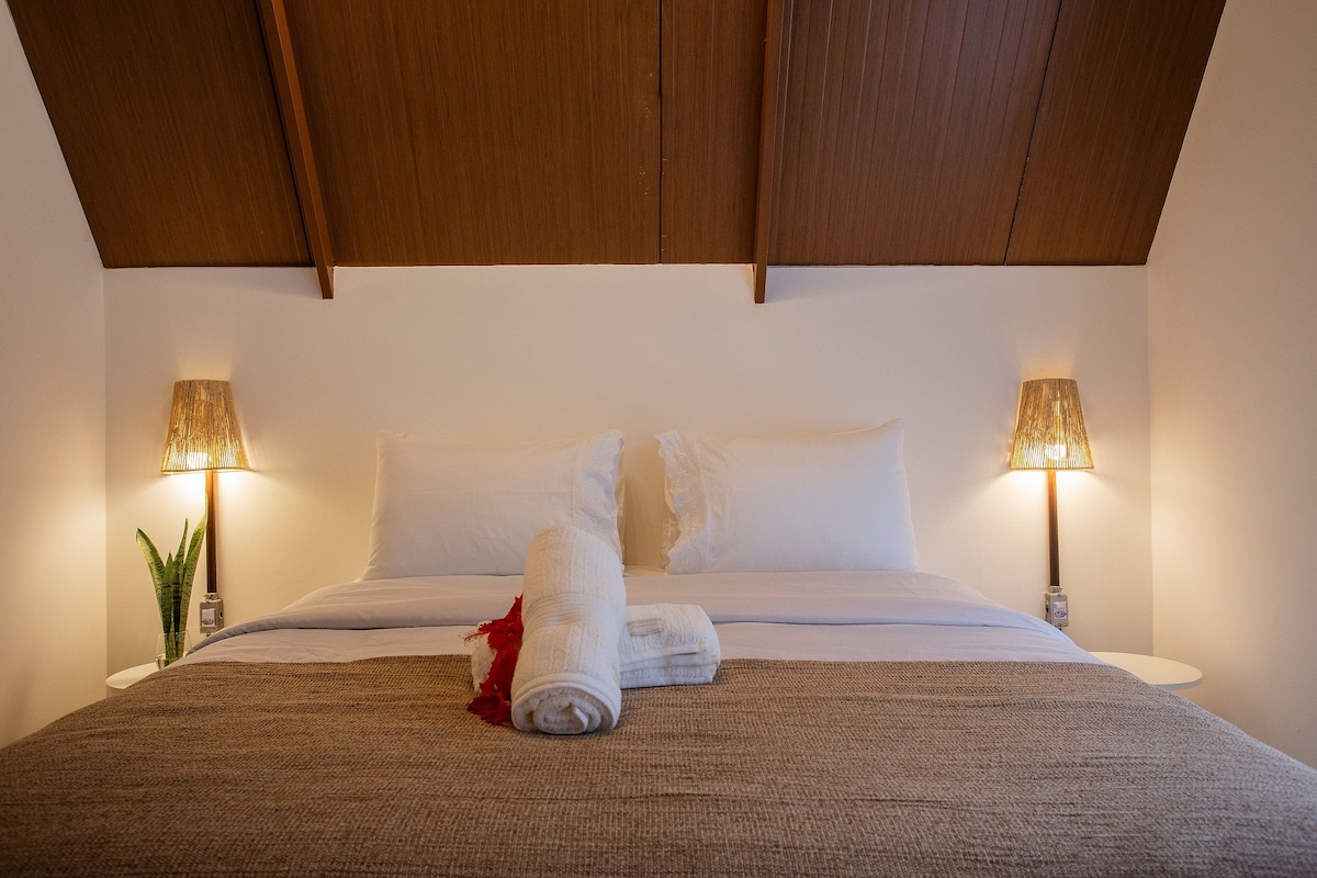 Kabana Kûara é ideal para duas pessoas. Rústica e aconchegante, toda mobiliada. Cozinha equipada com frigobar, fogão com forno, liquidificador, cafeteira prensa francesa, e utensílios básicos para preparar refeições se desejar. Quarto com cama casal, varanda com redes e espetacular vista. Ventilador e WiFi. Chuveiro com água quente fornecida por aquecedor solar. Localização perfeita para quem procura contato com a natureza. Apenas 200mts do mar e das barracas mais influentes. Estacionamento.