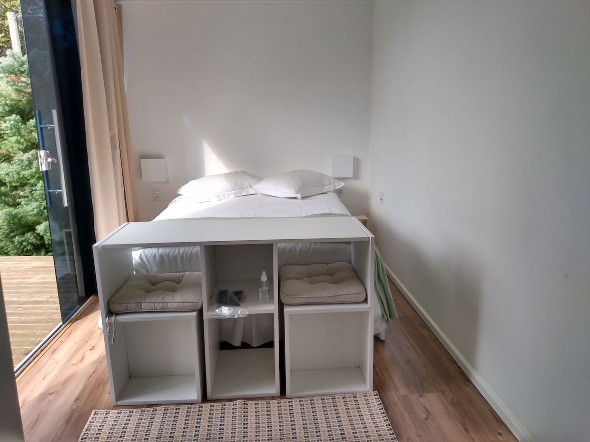 Desfrute de uma estadia única e contemporânea nesta acomodação exclusiva à beira-mar. Nosso espaço foi cuidadosamente projetado em um contêiner moderno, oferecendo conforto e estilo incomparáveis. Com uma vaga de garagem disponível, ar condicionado para o seu conforto em todas as estações, conexão WiFi rápida e uma confortável cama queen size. Aproveite a vista deslumbrante e a conveniência de estar perto das maravilhas naturais enquanto desfruta de todas as comodidades modernas.