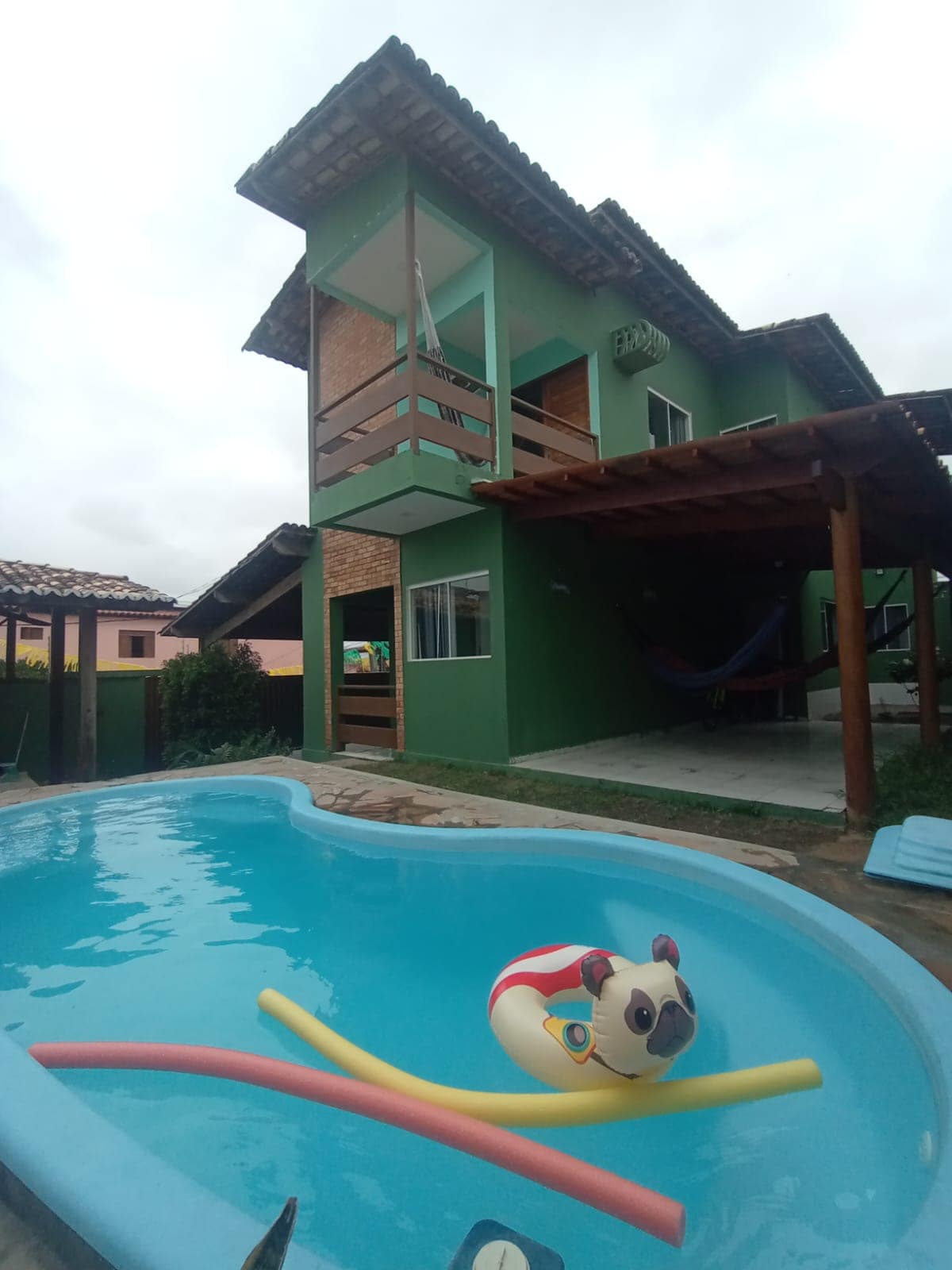 O 1º andar acomoda até 4 pessoas. São 2 suítes, sala, cozinha e varanda. A área de lazer, que inclui piscina, churrasqueira, forno de pizza, lavabo externo, jardim e garagem, é compartilhada com os moradores da casa (meu pai e meu irmão) e demais hóspedes do térreo. E também contamos com dois anfitriões muito queridos: Stella (Labrador dorminhoca) e Sansão (Pinscher cheio de personalidade). O ambiente é familiar e acolhedor, perfeito para curtir bons momentos em família.