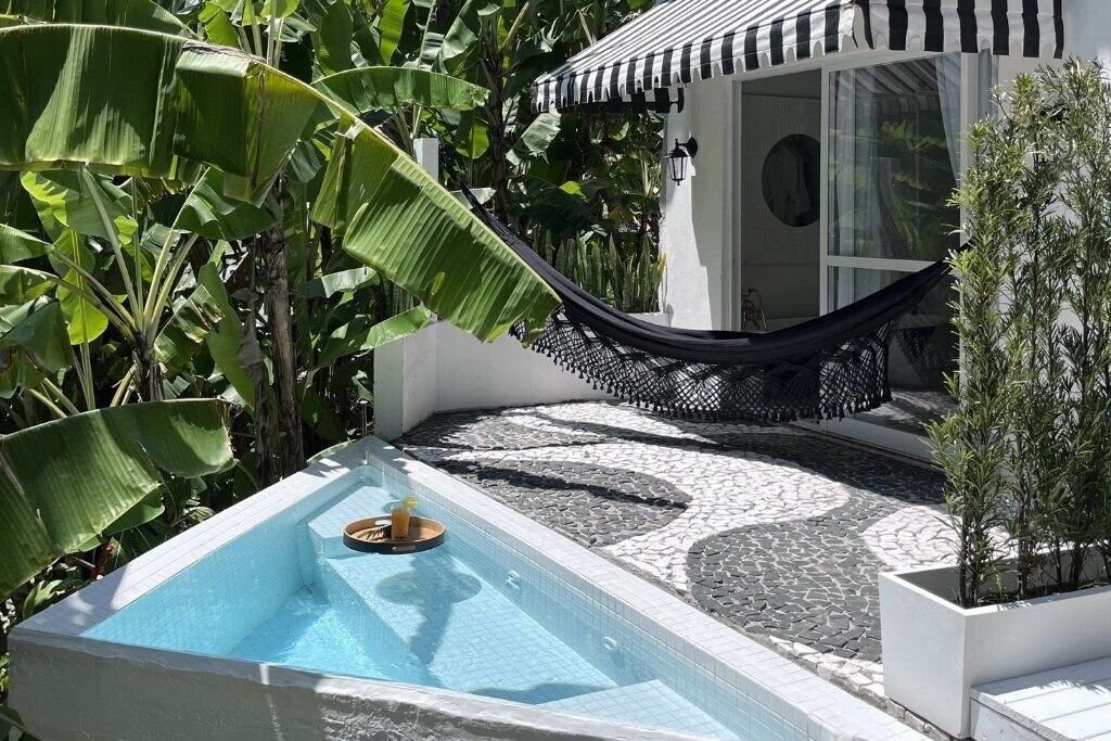 Multitemporada presents the Beautiful Suite Room 4, belonging to the CasaIvan property, located in the Vargem Pequena neighborhood on Florianópolis Island. A cozy and pleasant space, perfect for couples. The property stands out for its location and comfort, it has a swimming pool, lounge/bar, barbecue area and a luxurious air-conditioned suite with a free-standing soaking tub and a private heated pool with chromotepary; Enjoy a delicious breakfast included in your stay;