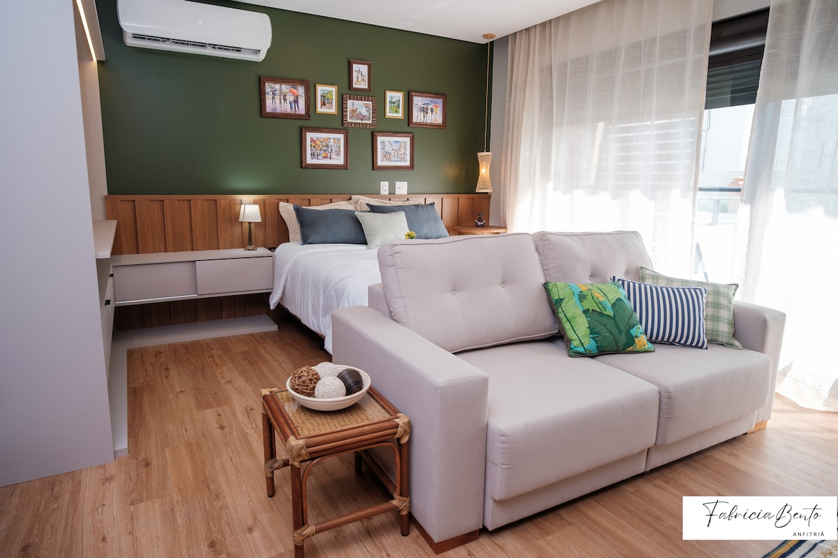 Lindo flat, com vista voltada para a piscina do Il Campanario Resort e parcialmente para o mar da praia de Jurerê Internacional, Florianópolis/SC. A suíte é charmosa e aconchegante, conta com 57 m² de área privativa, 1 quarto com uma cama king size e uma sala de TV com sofá cama confortável. Os nossos hóspedes terão a possibilidade de desfrutar de toda estrutura do Resort, com o mesmo tratamento dispensado aos hóspedes do hotel. O valor está nas experiências. Que tal viver essa?