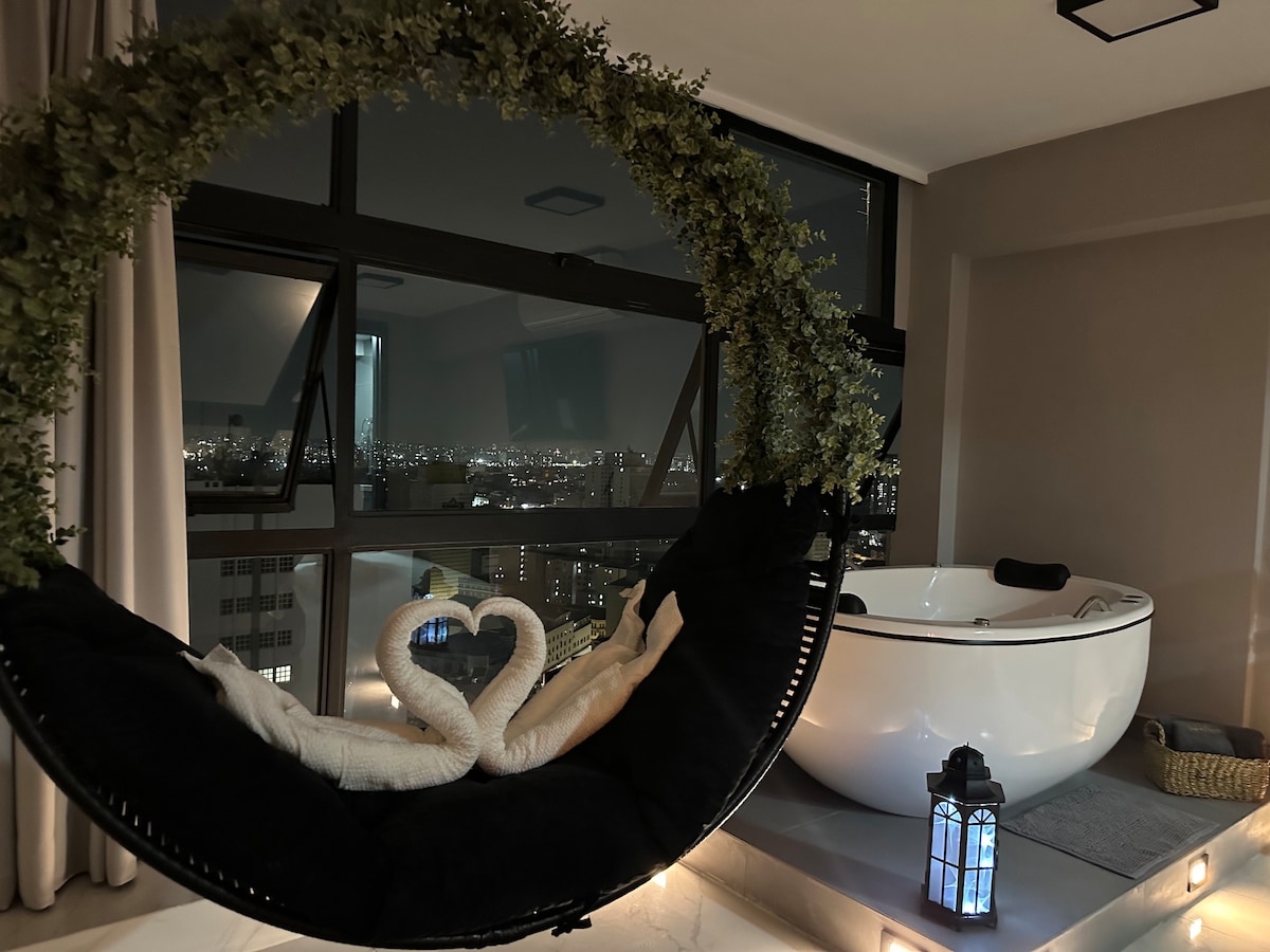 O Vista do Mirante é um Studio cheio de charme e conforto para casais desfrutarem de uma experiencia única. Conta com uma localização incrível no Centro Histórico de SP, dentro do Edifício que tem um dos mais importantes cartões postais de SP que é o Sampa Sky. Com vista de tirar o folego por estar no 33º andar com vista incrível de SP e Serra da Cantareira. Você fará belas fotos pois o espaço conta com decoração , lindo balanço decorado, banheira c/Hidro e cromoterapia!