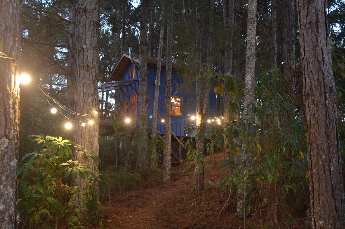 Casa Ninho do Condado dos Guapuruvus. É Uma Casa na árvore? Sim e não. Um chalé suspenso? Sim e não. Uma cabana? Uma espécie de Casa ninho? Sim, talvez sim. Com certeza uma experiência. 2 andares e um térreo. Quase um predinho.. Resolvi compartilhar e disponibilizar sempre que a procura for para no máximo 4 pessoas. Lareira, sauna, lençol térmico … ao lado de um rio …não aceitamos visitas sem autorização prévia. Temos um chalé extra para o segundo casal.
