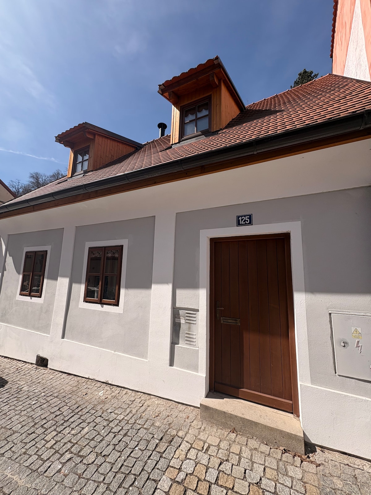 Tichý, romantický apartmán přímo v centru s výhledem na hrad má původní zrenovované dřevěné podlahy, je zde kompletně vybavená kuchyň se zařízením a kávovar. Apartmán má vlastní koupelnu s toaletou dohromady. SMART televize s Netflixem a silná WIFI .Kouření je zakázáno! PEJSKY kvůli historickým podlahám také NEDOVOLUJEME. Apartmán je koncipován jako částečně oddělený pokoj s manželským lůžkem a kuchyň s malým gaučem, kde se v případě potřeby může vyspat další osoba. Zvýšené přízemí,7 schodů.