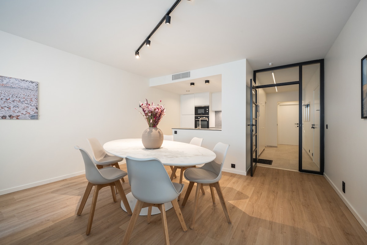 Het modelappartement inclusief terras met zeezicht werd ontworpen door SheCi be architecten en wordt reeds jarenlang gebruikt als showroom. Geniet van het tafelen op het terras met zicht op zee of kijk 's avonds naar een film met bioscoop ervaring. Een totaalinterieur beleving op een paar meter wandelen van het strand, centraal gelegen in de bruisende stad Oostende.