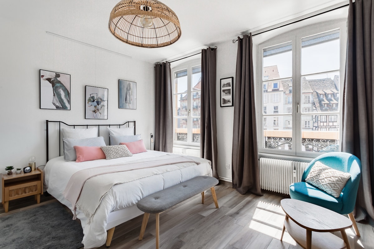 Découvrez l’Observatoire de la Cathédrale, magnifique triplex situé sur la célèbre Grande Île de Strasbourg. Idéal pour une escapade romantique, un séjour en famille ou un voyage d'affaires, ce logement unique allie confort moderne et charme alsacien. Ce triplex offre une décoration chaleureuse et élégante, avec des touches alsaciennes traditionnelles qui se mêlent à un design contemporain. Garage privé gratuit avec accès sécurisé à 20 mètres.