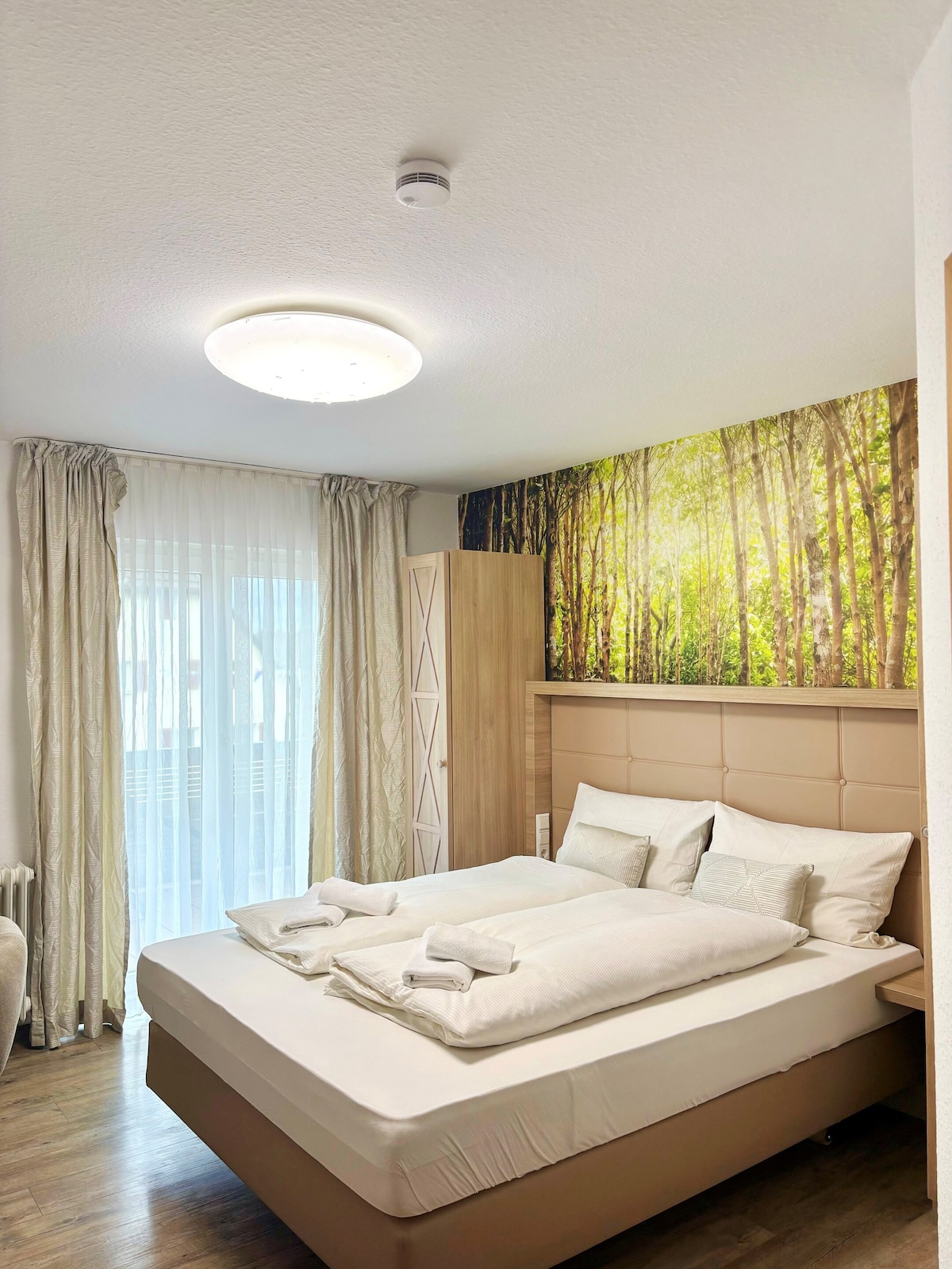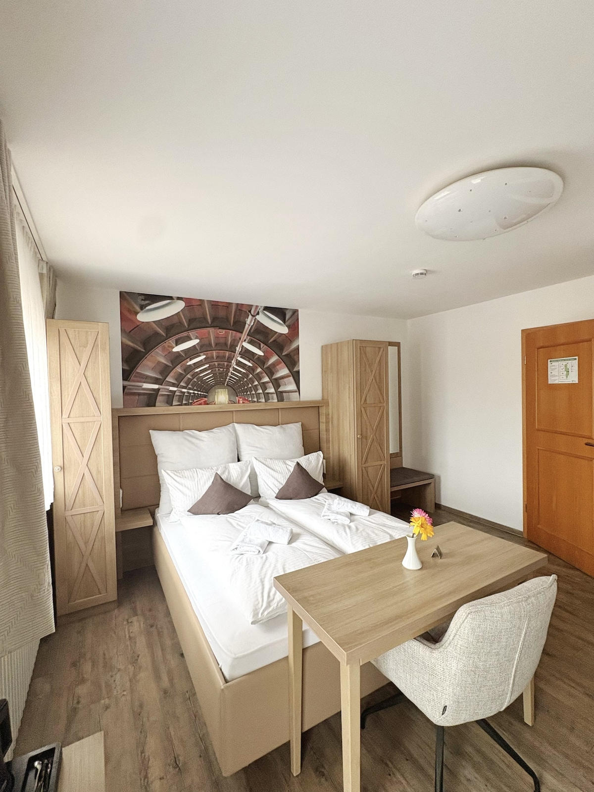 Hotel Restaurant Sonne Zentral gelegenes DZ Deluxe inkl. Frühstück - ca. 35 qm - Doppelbett | Boxspringbett - Schreibecke und gemütliche Sitzecke - TV / Zimmersafe / kostenfreies W-Lan / Telefon - Dusche/ WC/ Haartrockner | Kosmetikspiegel - Teestation - 1 Flasche Mineralwasser 0,5l von Schwarzwald-Sprudel - Reichhaltiges Frühstück Die Zimmer befinden sich in unserem Gästehaus Sonnenflügel in der Adlergasse. Ein Aufzug ist im Gästehaus nicht vorhanden.