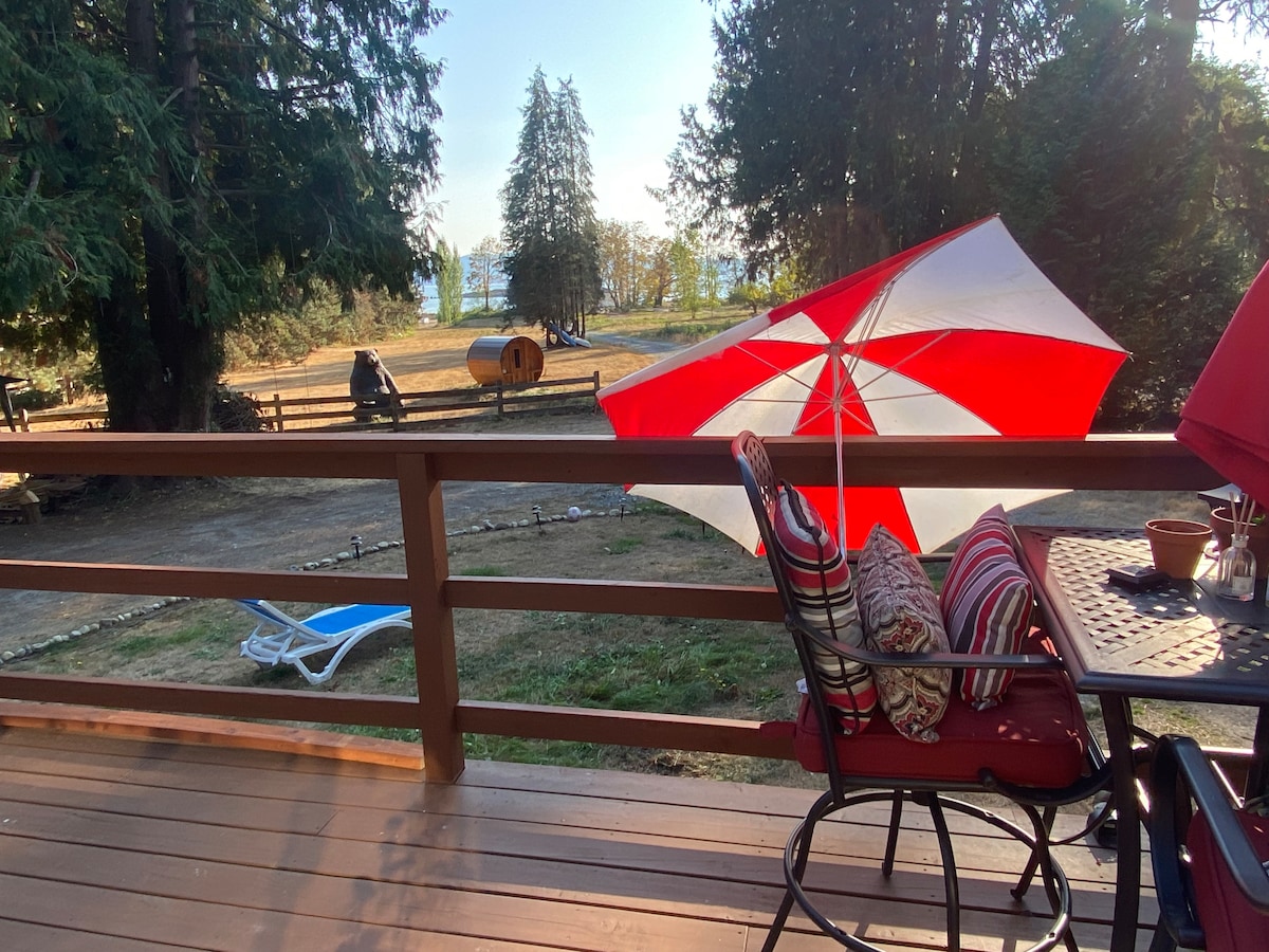 **PRIVATE HOT TUB** This bnb is located on the back corner of our 2.5 acre property and has a bird's eye view of our chicken coop (don't worry, no crowing roosters, only hens). Our property is located only a quick 5 minute walk to Frolander Bay Beach and a 10 minute drive to the Saltery Bay Ferry Terminal. This space is perfect for getting the camping feel without any of the hassle of packing up all of your own camping supplies!