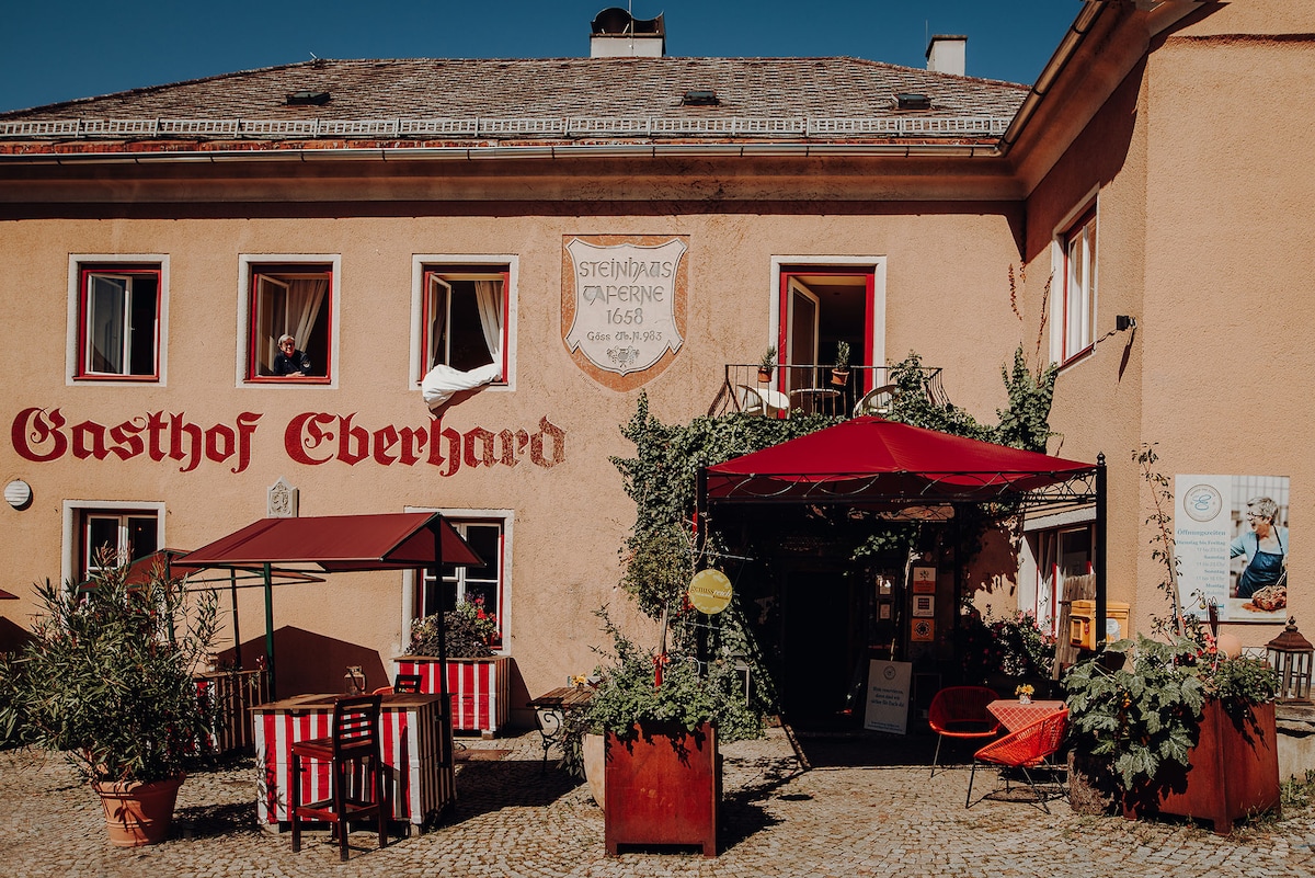 Zwischen Kräutern & Herzlichkeit: Unsere Hoisn Suiten liegen ruhig im Gemüsegarten – gebaut 2019, mit viel Liebe zum Detail und hochwertiger Ausstattung. Südlich vom Grimming gelegen, ist hier ein Ort zum Durchatmen entstanden. Gleich nebenan unser Wirtshaus – seit 7 Generationen mit Leidenschaft geführt, 2021 mit 2 Hauben ausgezeichnet. Ein Platz für Genuss, Ruhe & echtes Heimkommen.