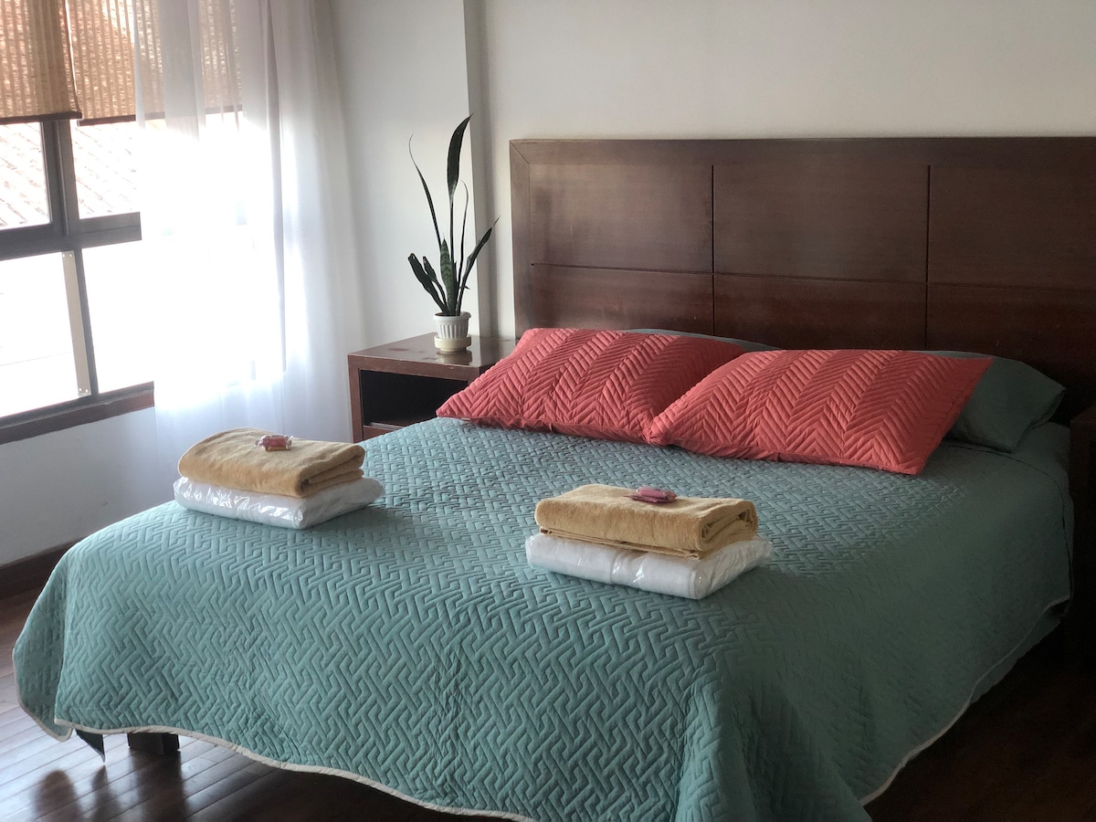 Relájate con toda la familia en este alojamiento donde la tranquilidad se respira. A tres cuadras de la plaza principal. cerca de supermercados y restaurantes. Zona tranquila, segura y turística. Recepción y seguridad las 24 horas.
