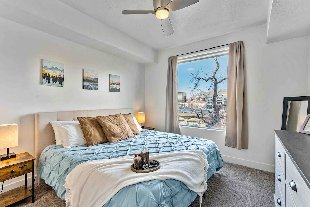 Enjoy a beautifully BOHO designed apartment located in the middle of Salt Lake City. The apartment is stocked with all of the essentials. Feel free to use the fully stocked kitchen and make a great homemade meal while looking at the stunning views from the balcony. The apartment is located near all of the cities top destination; Temple Square, University of Utah, Vivint Arena, Salt Palace, Ski Resorts, and much more! Restaurants, convenient stores, and shopping centers are steps away!