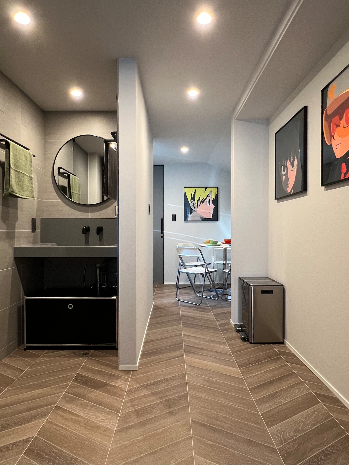 This is a twin room apartment located just a 2-minute walk from Koenji Station, offering convenient access to Shinjuku via the JR Chuo Line in just 7 minutes. We combined modern and creative visuals with Japanese taste to design a room resembling an atelier. Additionally, this room is situated on the 4th floor, designed to allow plenty of natural light in through the windows.