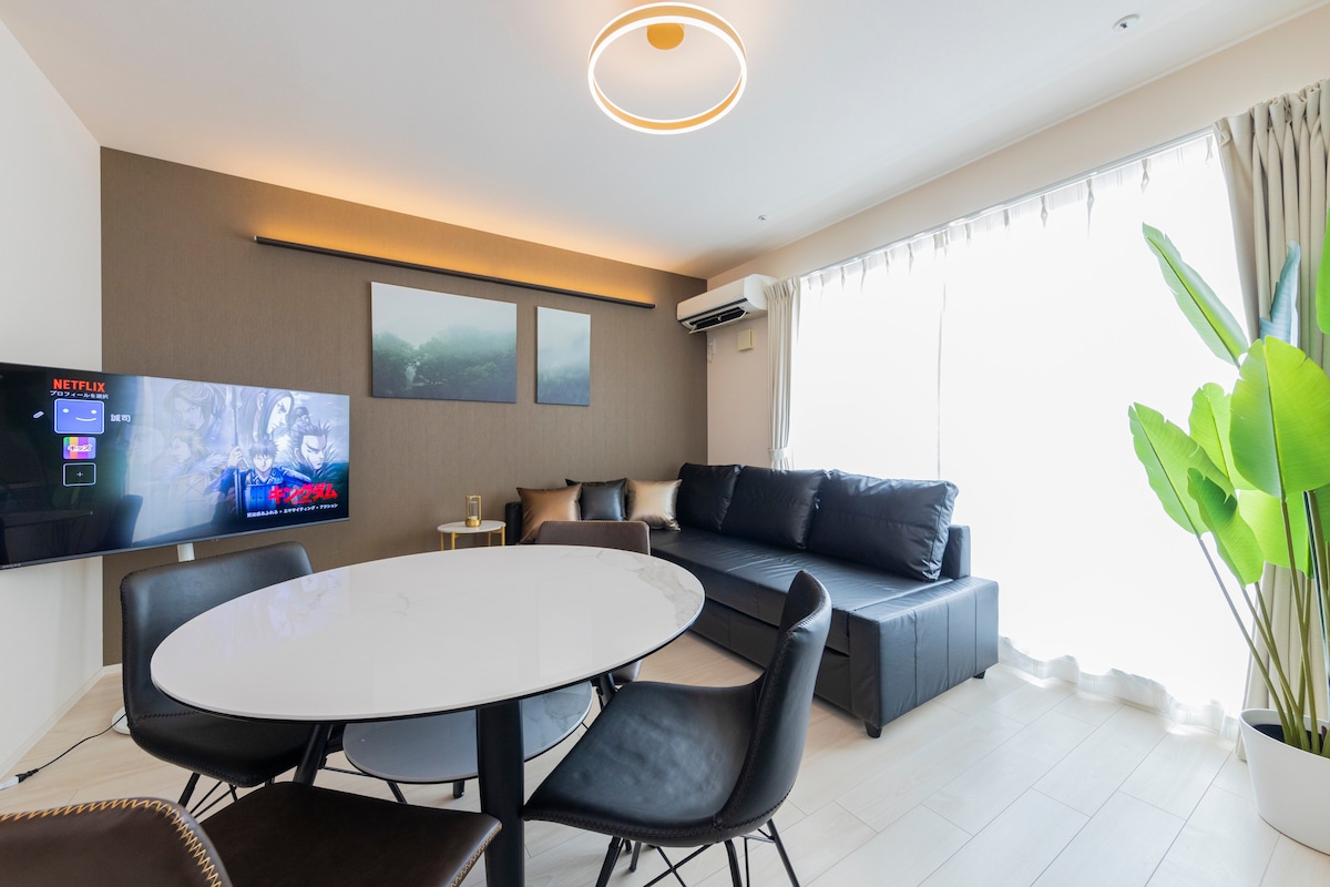Enjoy a spacious Japanese-modern room with a cozy beds, tatami area, large dining table, kitchen. The room has 2 washbasins, 2 private showers, and 2 toilets, offering great comfort for groups. Located right in front of Tokyo Skytree, just 2 minutes to Solamachi and walking distance to Asakusa, it’s the ideal base for sightseeing. The area has supermarkets, convenience stores, and many restaurants. We have 9 identical rooms available. Experience your best Tokyo stay with us!