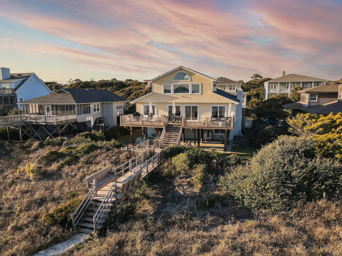 The Sanctuary on Folly Beach! Oceanfront living /floor to ceiling windows for lots of sunlight & ocean views from multiple rooms. Relax & take in the Atlantic breeze on the full-length oceanfront covered porch & sun deck. Private beach access will easily put you directly into the sand & waves. Walk, ride or drive 0.5 miles to shops & restaurants. Parking for up to 4 vehicles in the driveway area. Additional pet fee of $150 + tax per pet (2 dogs max). Must be 25+ to book. No events. BL# 001839
