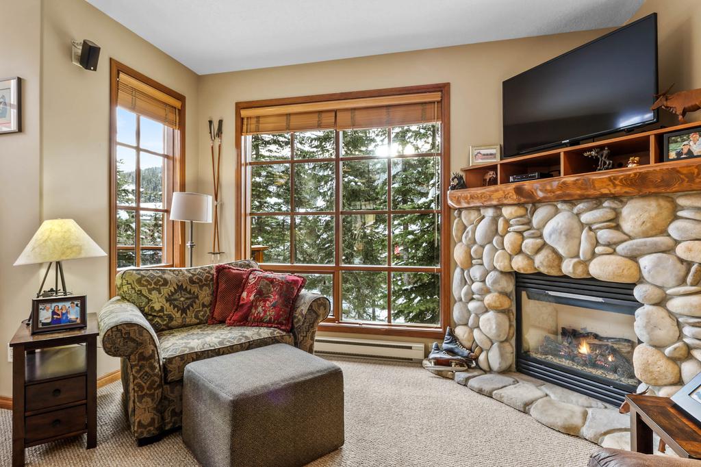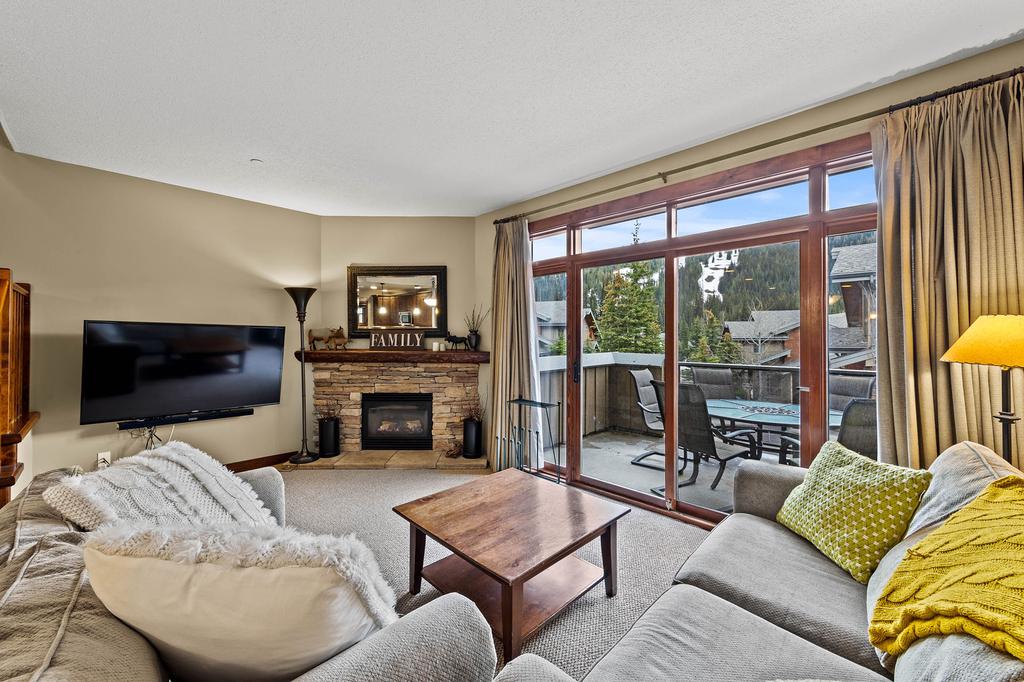 A true ski in ski out condo, with xc ski trails and the new Morrisey bike trails located across the street! Some highlights for your stay: • Ski in from multiple runs and ski out to two lifts from the front door • Private hot tub • Indoor bike and ski storage • Gas fireplace, heated tile flooring • Fully stocked kitchen • Loading spot directly outside the condo & free underground, heated parking • Ground floor, stairs-free Stones Throw condo • Direct access to private grass space behind condo
