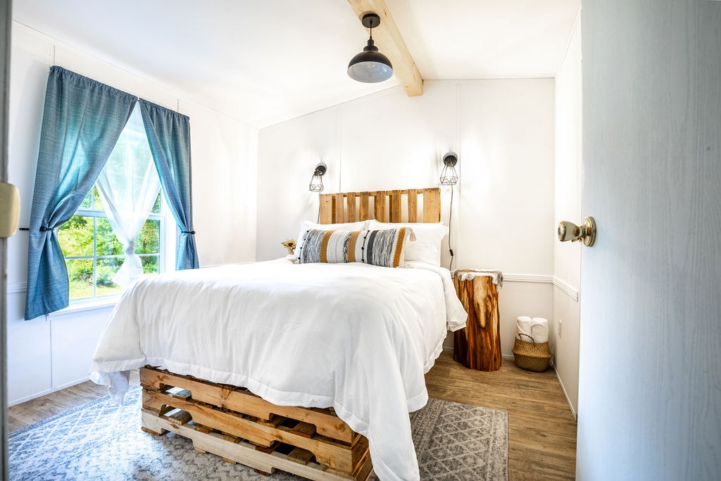 We built the Wren Cabin to be a serene space filled with light and art and with lots of cozy details. Lofted ceilings, a spiral staircase and large open concept with lofted bedroom. The cabin also has a gorgeous wood-fired sauna for those colder days. Wren cabin has a large wraparound deck for relaxing and an outdoor fire pit, as well as shared access to Adams Pond. The space is modern Scandinavian, light and aery, and filled with thoughtful details.