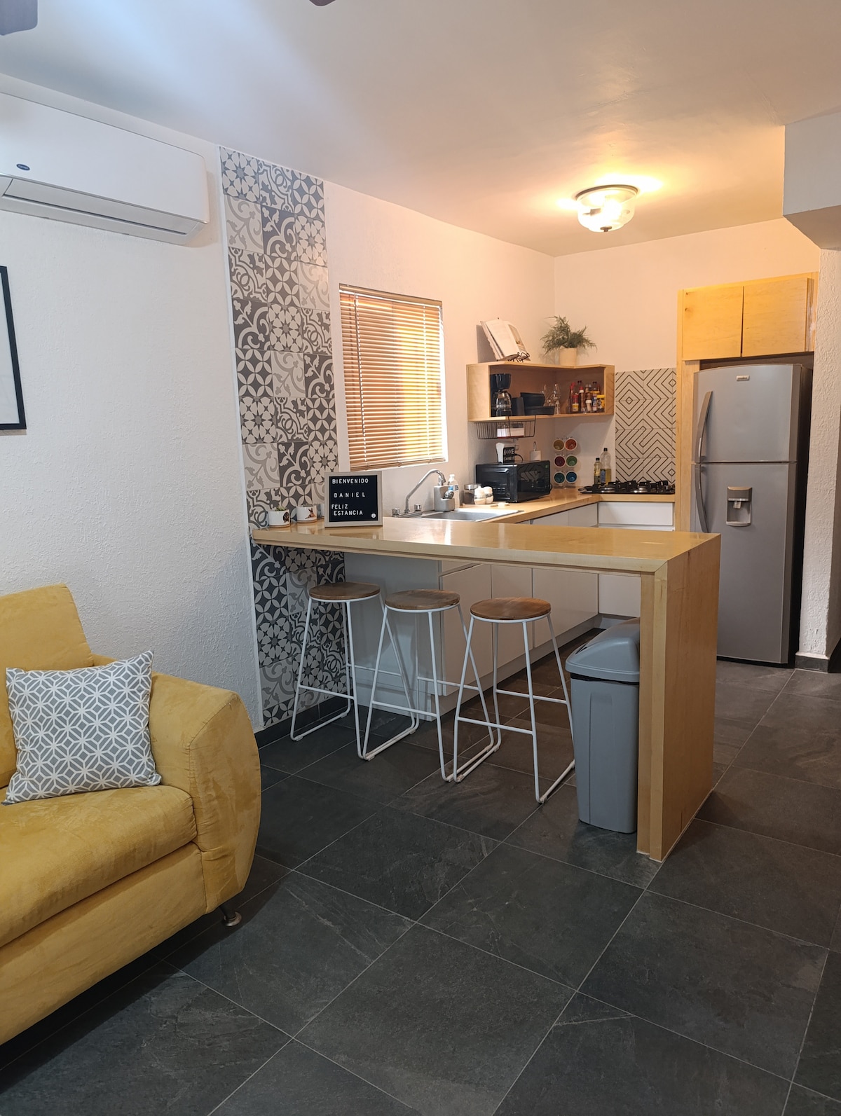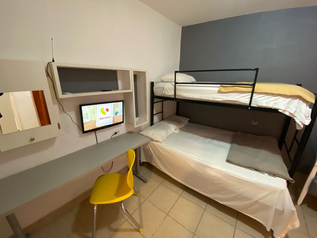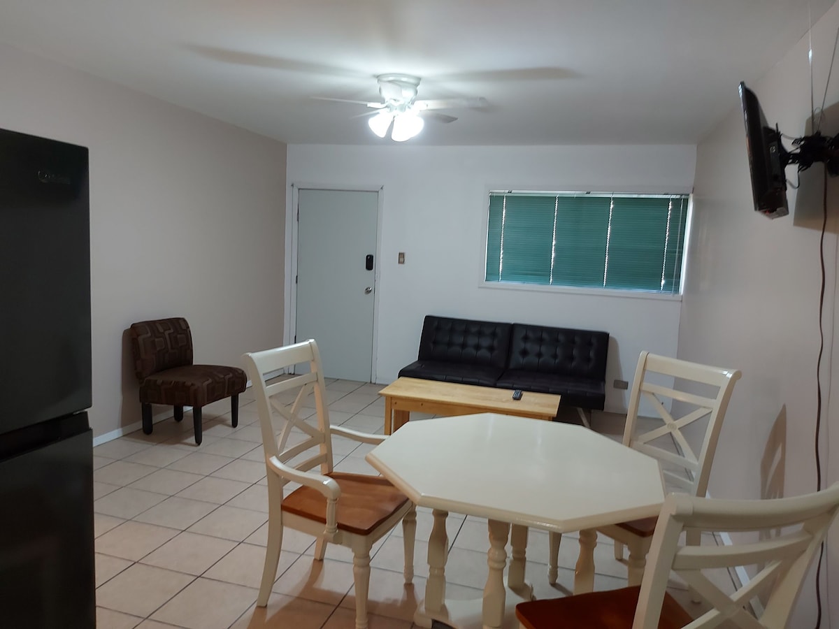 "Acogedor departamento, una recámara, ideal para estancias cerca del consulado de Estados Unidos y CAS (3 min en carro, 10 min. caminando) en C. Juarez. Perfecto para viajeros que buscan comodidad. Excelente ubicacion (cerca de Restaurantes, Centros Comerciales Misiones/Plaza Nacional, Hospital Star Medica). Climatizado con mini split frio/calor para mayor comodidad. Cuenta con: WIFI, NETFLIX, PRIME, Disney+, Secadora y plancha de cabello. Acceso lavadora y secadora en estadías de 5 días o más.