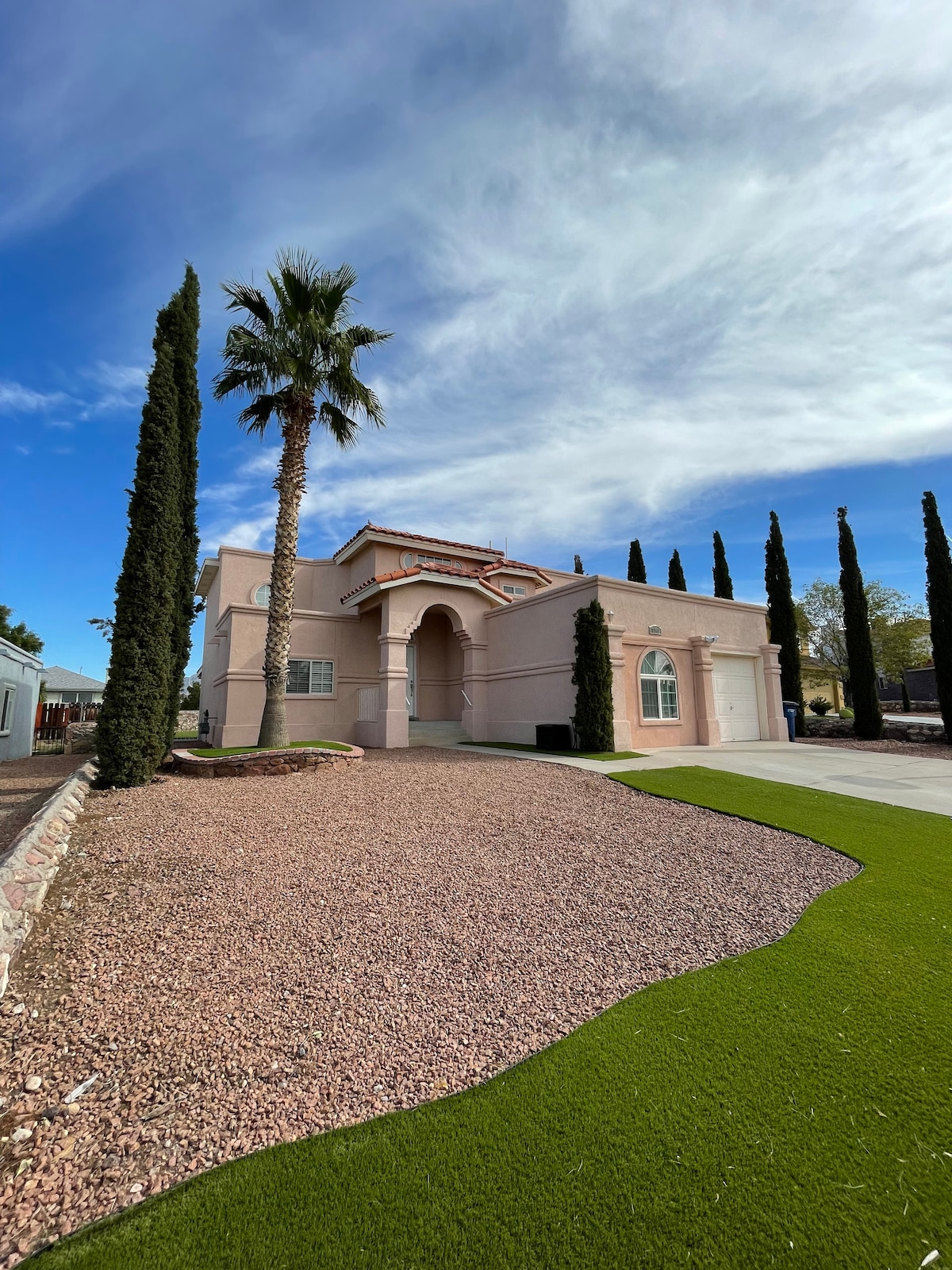 Relájate y desconectate en este alojamiento tranquilo y elegante en el corazón del lado oeste en El Paso Tx. Este encantador espacio esta cerca de restaurantes, centros comerciales (Outlet Mall, Sunland Park Mall), hospitales, I-10, Mesa Street, UTEP, Estadio de beisbol Chihuahua, Walmart Supercenter y gimnasios. Cuenta con entrada privada, estacionamiento techado, jardines y una bella alberca. Te ofrecemos auténtica comodidad para visitas familiares, de negocios o esparcimiento. Te esperamos!