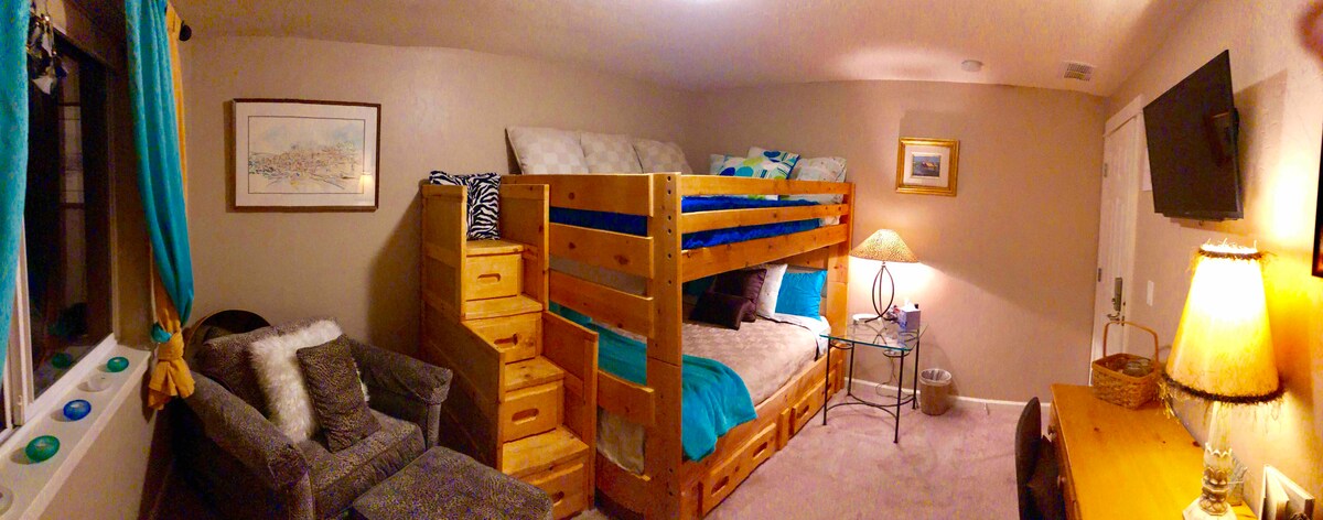 Awesome location! Fast internet, Wi-Fi. Clean and close to everything that is great in Bend - the river, Mt. Bachelor, restaurants, nightlife, cycling, kayaking, paddle boarding, hiking, breweries, concerts and so much more. You’ll love the location, ambiance, the outdoor space, and the comfy bed. Walk along the river trail to experience what everyone loves about Bend. Easy drive to Mt. Bachelor, approximately 25 minutes.