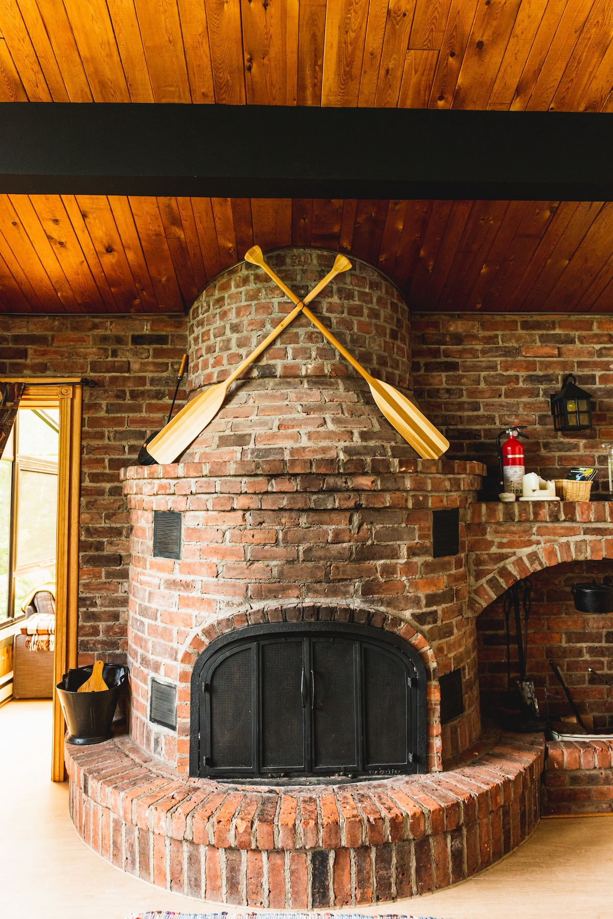 靠近湖边的舒适小木屋,带壁炉