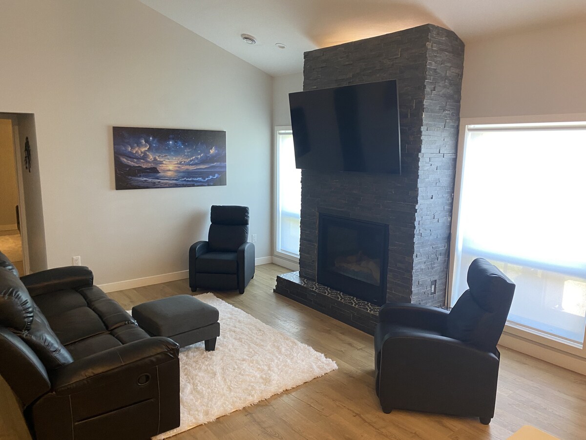 步道、露台和海湾景观!舒适的壁炉!