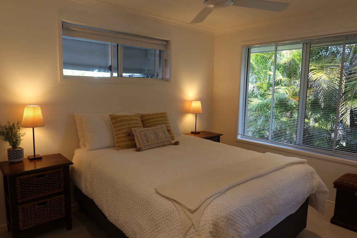 This cozy one-bedroom apartment adjoins our house and features its own entrance and private courtyard. It is adults only. Location: 15-minute walk to Robina Town Centre with shops, cinemas, restaurants, cafés, bars, and al fresco dining. 20-minute walk to Cbus Stadium and Bond Institute of Health & Sport, directly opposite Robina Train Station. Bus stop nearby. To Bond University (3.5 km) requires one bus transfer. Bus trips to the beaches (from 8km away) take approximately 45 minutes.