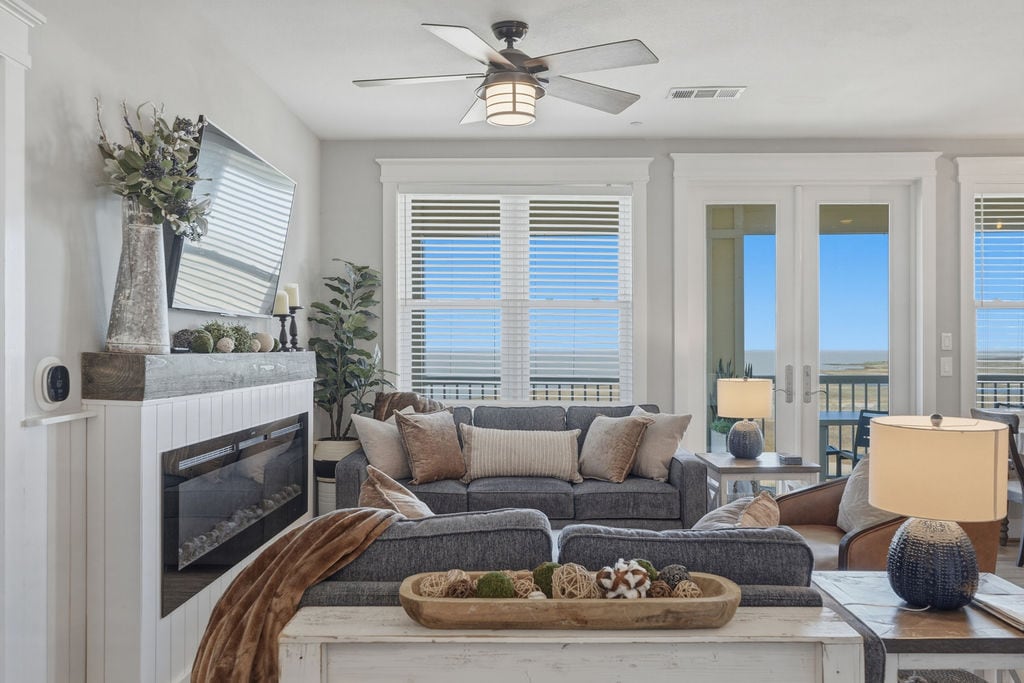 Come away to this amazing beach house in Crystal Beach with water views and walking distance to the beach. Outside, the property is all about lounging and entertainment, with a fire pit, hammocks, shady porches, sweeping balconies, a weber grill, and a ping pong table. Inside, you'll find 4 gorgeous bedrooms with a bonus kid-friendly sleeping nook, a spacious living area with fire place, and a well-stocked kitchen, perfect for families, friends, or couples. 5 min walk to the Beach