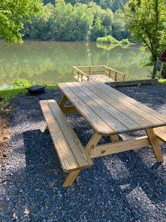 Camp Lot 1 is LOVED by all. When you arrive, your stress will immediately lift. Lot includes shaded gravel pad able to accommodate 48' unit. There is a shared riverside deck. River access areas for floating, swimming, fishing. 650' of river bank is yours during your stay. Fresh, clean open-air shower house. Fire ring & table/chairs provided. 30A service. Kayak & Tube Float excursions for a nominal fee.