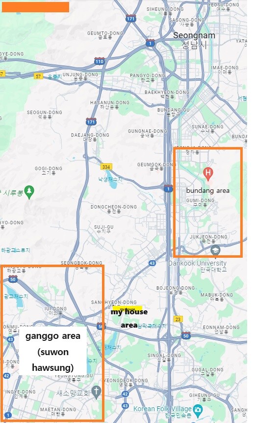 2 queen size * 1 single size bedrooms with 2 toilets(1 bidet) using whole 3rd floor under fully eqipped with kitcken, air conditioner, cable TV(Netflix ready), Massage chair, Coffee Machine etc. near Aju & Kyung Hee university. also near Taegwang golf club. 15 min to Samsung electric HQ. parking possible. (1 car)