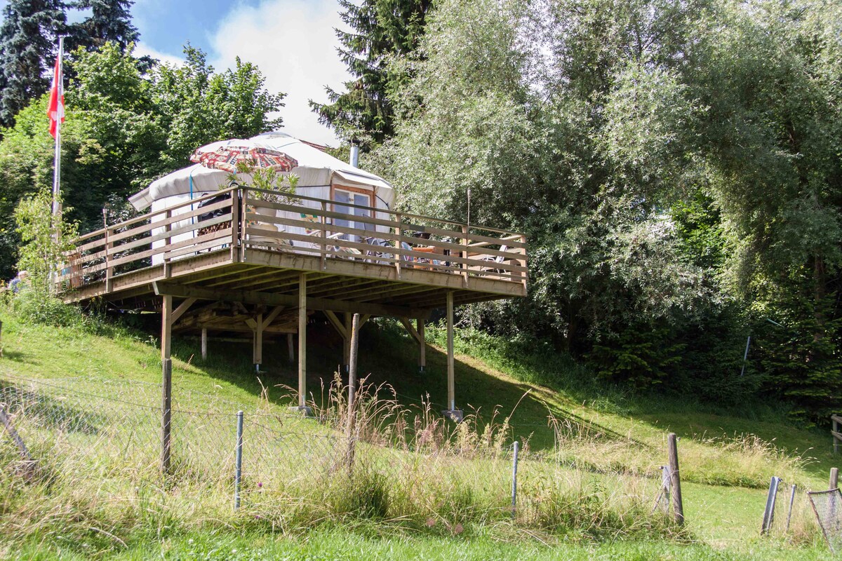 Si vous cherchez un logement insolite ou atypique, venez goûter à la yourte, vous immerger dans cette rondeur, ce nid douillet en écoutant les oiseaux, le vent, la pluie, en observant les chamois ou en jouant du piano ! Gueuroz est un petit hameau situé à 650 m d'altitude à 10 minutes des pistes de ski. Accès en voiture ou à pied (20 min. - 180 m de dénivelé) depuis Vernayaz - pas de transports publics. La bobine se réjouit de vous accueillir et de vous inspirer ! Bienvenue !