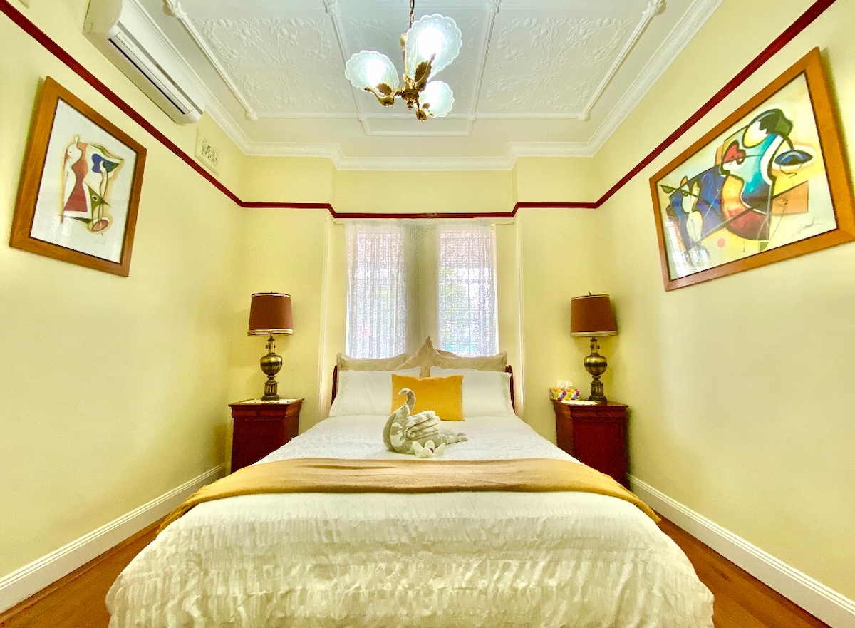 Step into 'Alloa', a 1912 workers cottage blending period charm with modern comfort. Original features like soaring decorative ceilings complement contemporary updates. 10 minutes walk to transport, cafes, parks and Marrickville's food scene. Enjoy: • Modern kitchen/dishwasher • Sleek bathroom • Air conditioning • Private entrance • Workspace • Retro dining space • Laundry • WiFi • Breakfast supplies • Free street parking Heritage charm meets modern living in vibrant, trendy Marrickville.
