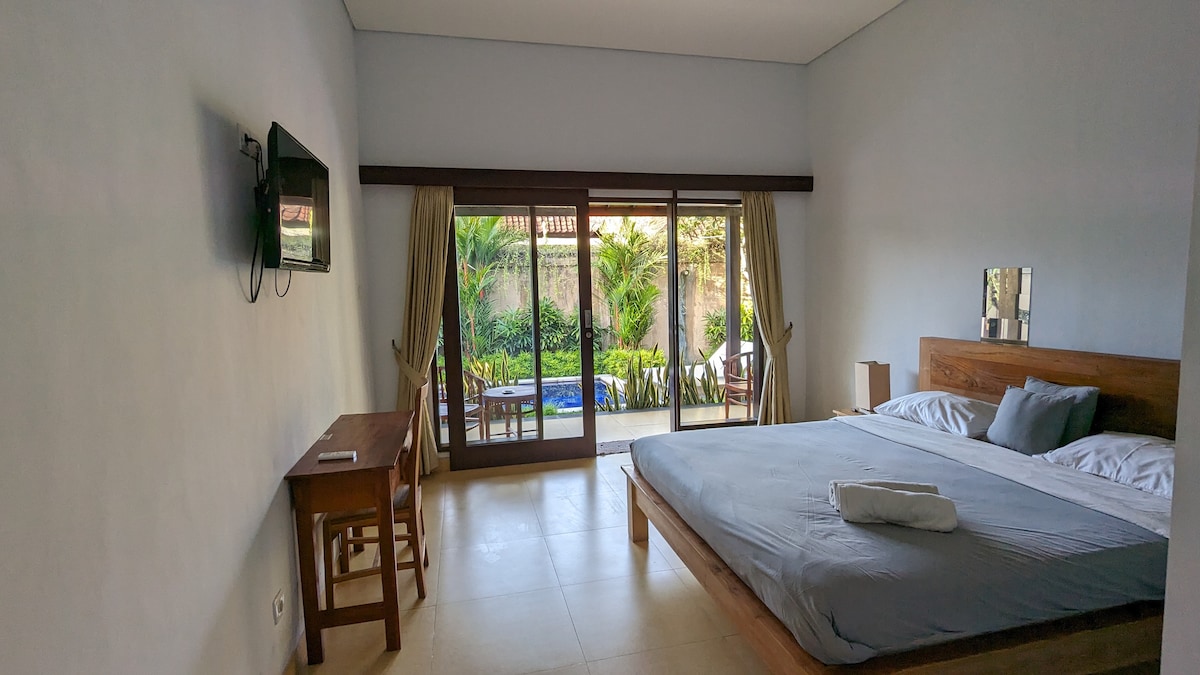 Gladak house is a traditional Javanese house made of wood (32 M2). There is a shared swimming pool with rice field view (sunset), We are providing Scooter and Car for rent with a friendly price. Scooter distance : About 10-20 minutes to the beach (Canggu), About 17-30 minutes to Seminyak (Kuta) About 22-45 minutes to Ubud, About 25-60 minutes from Airport Walking distance : 2 minutes to the traditional market (Pasar Sedana) and local restaurant (warung), 3 minutes to indomaret (mart)