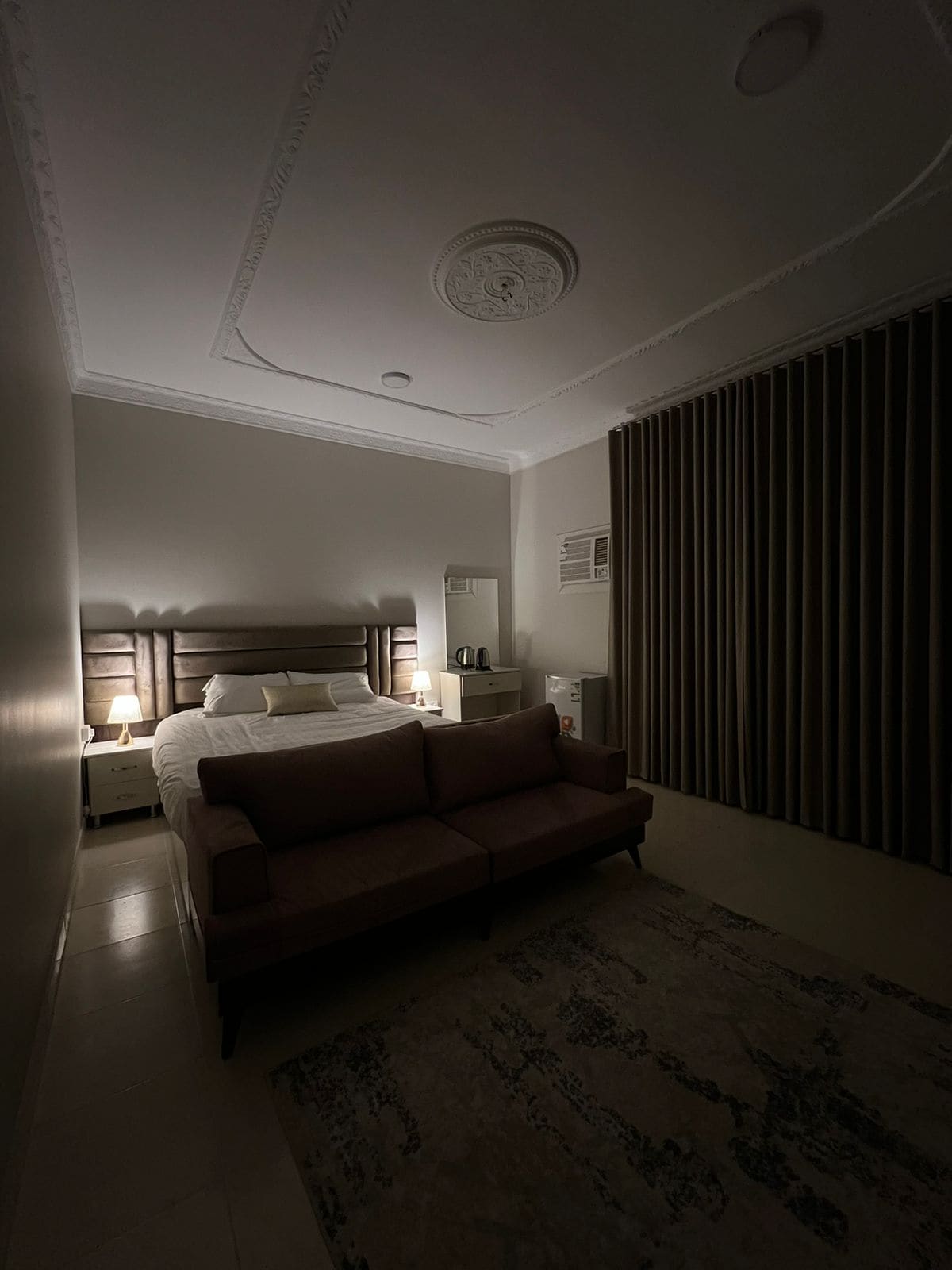 استرخ في هذا المسكن الفريد والهادئ ، ستديو بغرفة نوم خاصه يسع لشخصين . يتوفر فيه جميع المسلتزمات المتعلقه بالسكن من : - مطبخ خدمه صغير يتكون من ( مايكرويف ، غلاية ماء ، آلة قهوة لتحتسي قهوة هادئ ) - غرفة نوم بسرير كينغ مع خزنة ملابس ، ايضا تلفزيون ذكي بشاشة مسطحه مع اريكه دائره مصممه بشكل عصريه . - حمام مخدوم بجميع الأدوات اللازمه . يتسع المكان الى شخصين . يمتاز المكان بوجوده في منطقة حيه على شارع تجاري وقريب جدا من الكافيهات والمطاعم وايضا المطار .