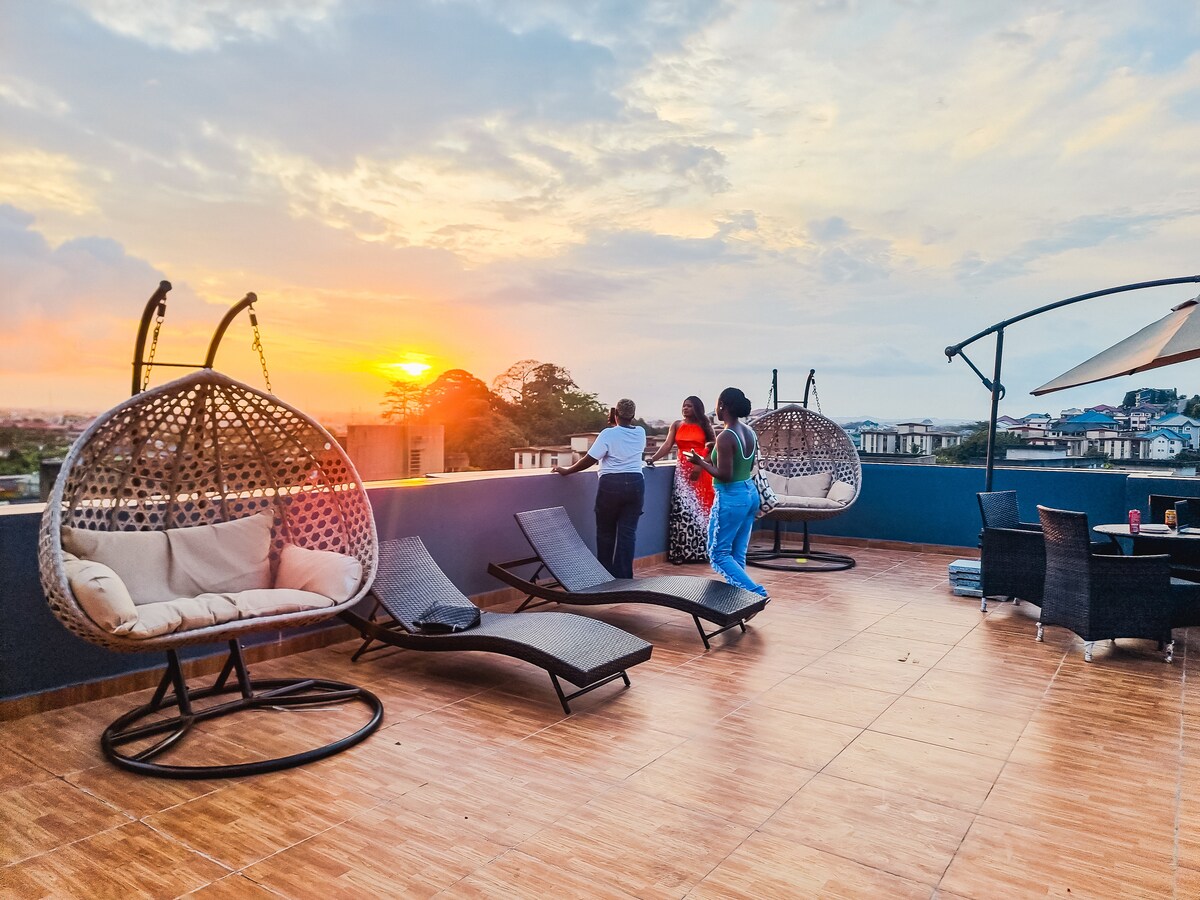 This unique place has a style on its own. A modern, full-service, family-friendly a bedroom apartment offers a private rooftop swimming pool and an exclusive rooftop bar and grill for families or guests. Located in the heart of Takoradi’s Anaji area. The property features a fully-equipped kitchen. The living room is outfitted with a 65" Smart TV, Netflix, Wi-Fi, and a soundbar for your entertainment.