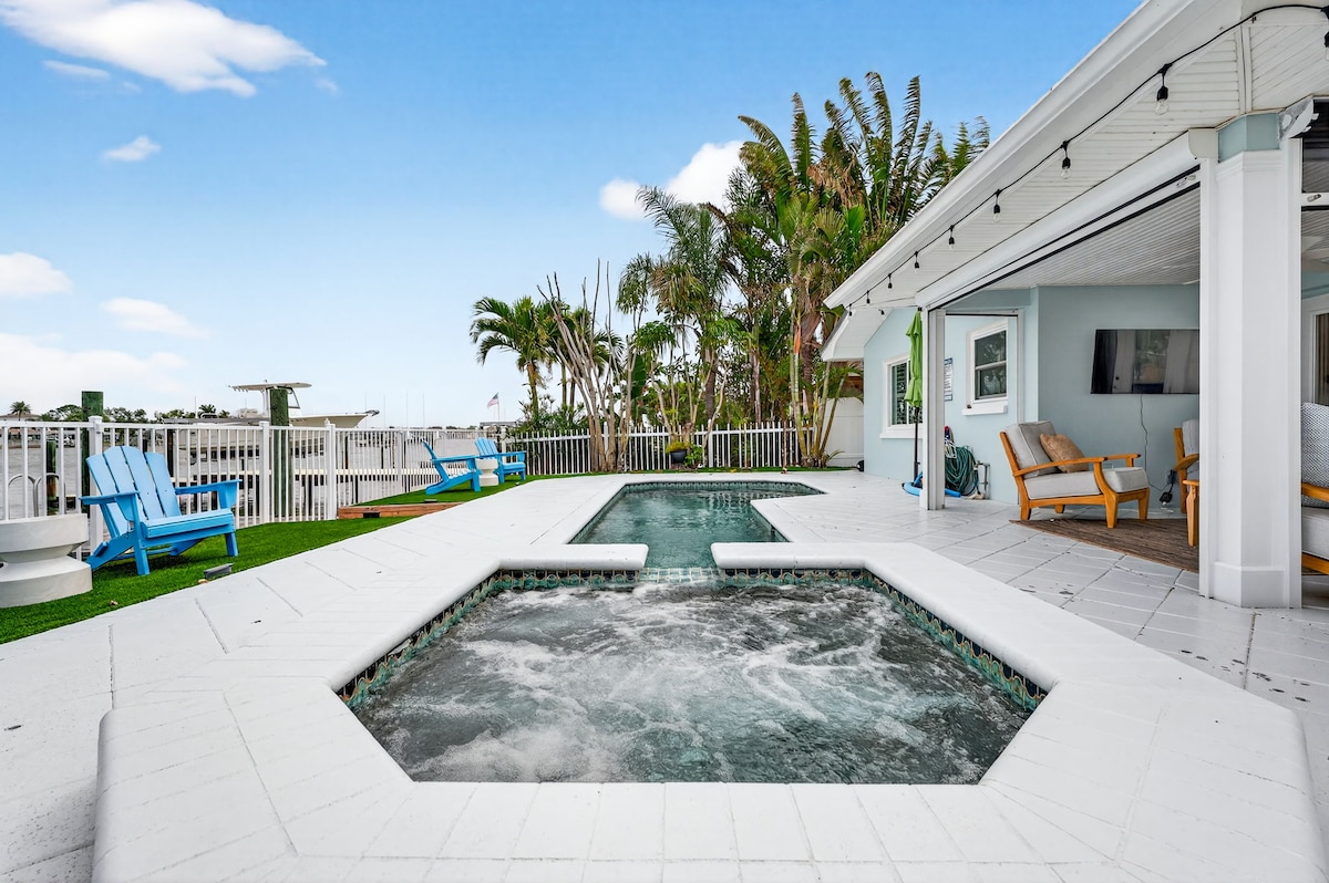 🌴 Escape slice of paradise, just minutes from the beach and surrounded by Florida’s natural beauty. This 2BR waterfront home features a private dock, a fully stocked game room, and a Florida room with sunset views and a cozy coffee bar. Relax outdoors with a fire pit, BBQ grill, and 6 lounge chairs. Whether you’re here to unwind, explore, or entertain, this home has it all.
