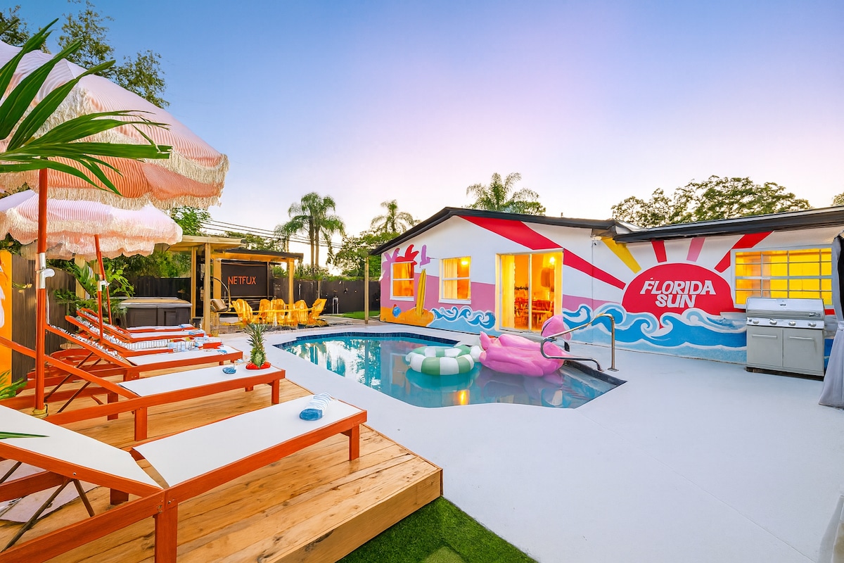 Welcome to A Little Havana in Tampa Florida! Located just 6 mins from Busch Gardens, 7 mins from the Hard Rock Casino, Florida Fairgrounds and less than 10 miles to downtown Tampa. Easily accesible to the James A Hanley VA Hosp, Moffit Cancer Ctr and USF. Enjoy your unique stay in this one of a kind home. It features a vibrant design, a fully equiped game room with projector, a screened inground pool, a firepit with BBQ grill, outdoor seating and a yoga space for your enjoyment.