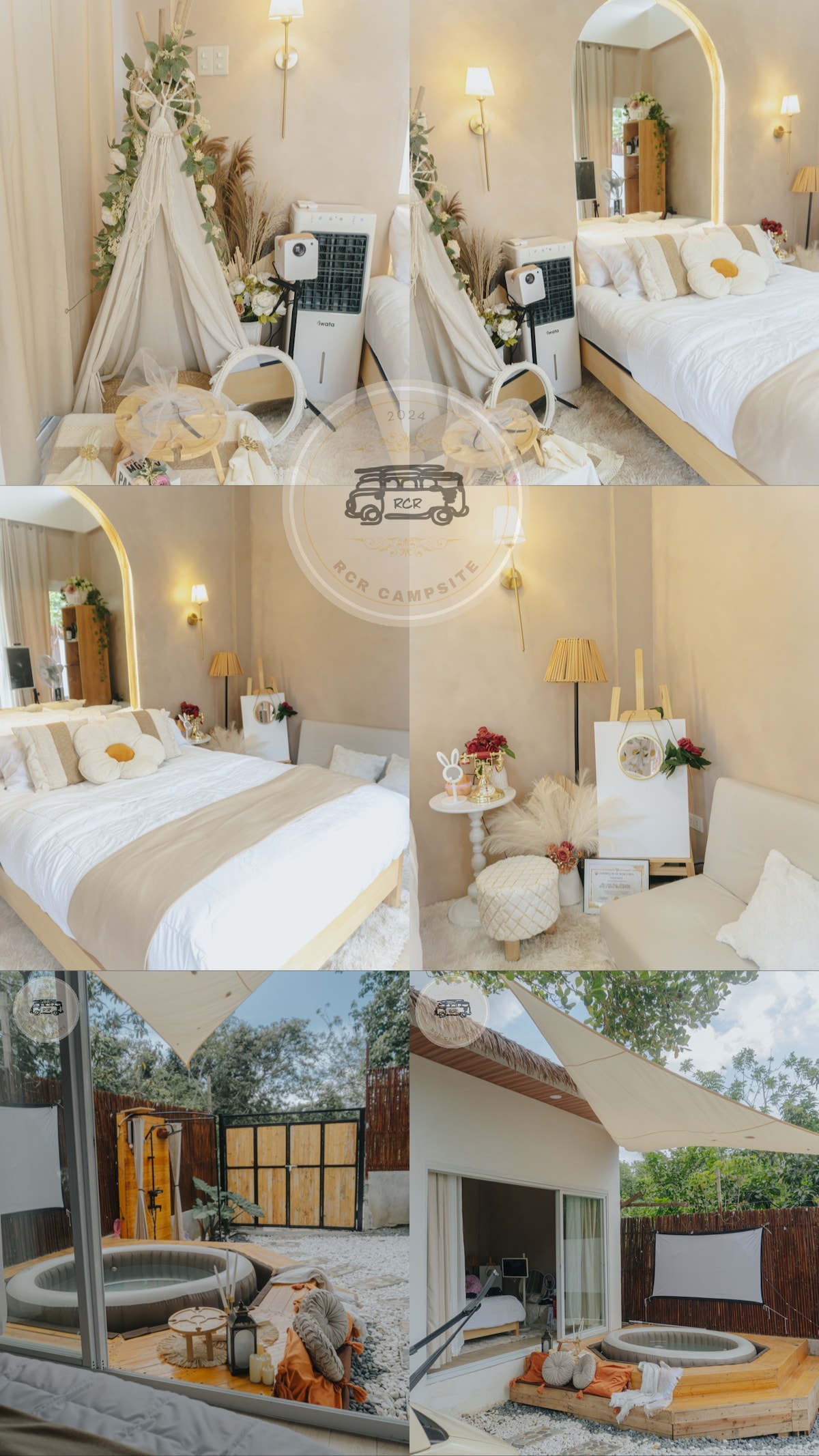 Escape to RCR Campsite, your private 145 sqm romantic private space with aesthetic villa, a heated jacuzzi, bubble tent, and dreamy setup for anniversaries, birthdays, or proposals. Free Special Occassion Decors. Free Breakfast for two, complete outdoor kitchen, firepit, loungebar, and entire space is yours alone no shared areas. Just 19 minutes away from Skyranch Tagaytay and close to tourist spots, with 2 nearby restaurant partners that offers free delivery only exclusive for RCR Guests.