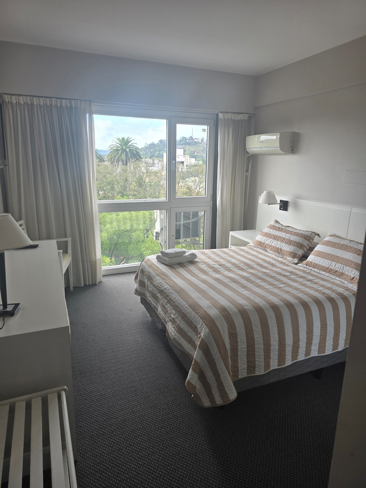 Habitacion doble de 23 mt2, equipada con: Una cama Queen o dos camas Twin. Se puede adicionar practicuna. Smart TV 32". Direct TV. WI-FI. Calefacción central. Split frío/calor. Caja de seguridad. Bañera con agarraderas. Teléfono. Amenities. Desayuno incluido. Estacionamiento. Acceso libre a todas las instalaciones.
