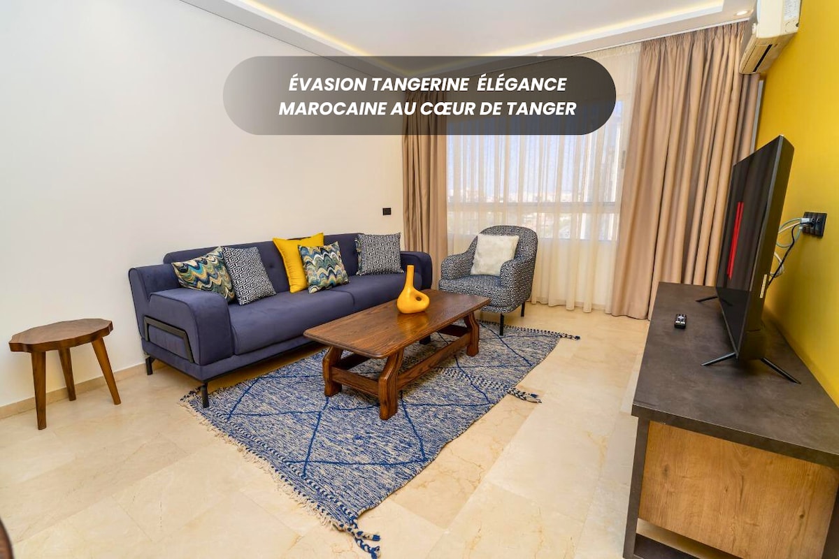 PLEASE READ BEFORE BOOKING For a unique stay in Tangier, we offer you this modern apartment, with stylish living room and balcony. Sleep well on memory-foam pillows and hypoallergenic bedding. Quiet A/C, strong Wi-Fi, fully equipped kitchen, washer. 65″ QLED TV for movies and sports. Secure entry and elevator. Walk to cafés, shops, and the Medina. to ensure a healthy and relaxing environment. Important note: The apartment is intended only for families, married couples, or same-gender friends.