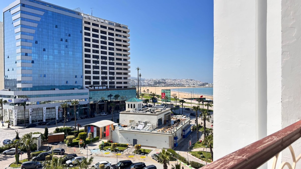 Emplacement n °1 à TANGER! Plage directement en face avec un grand balcon vue partielle de la mer. Meilleur emplacement à Tanger. Télévision par satellite-WiFi Fibre, Netflix, Iptv.Tout est accessible à pied marina ,veille ville,Macdonald, pubs,cafés.... Les voyageurs munis d'une voiture auront une place de parking gratuite dans le garage de la résidence avec accès direct à l'appartement.Sécurité 24h/24 . Soyez mon voyageur. * Avant de réserver, veuillez lire attentivement ma description MERCI🙏🙏