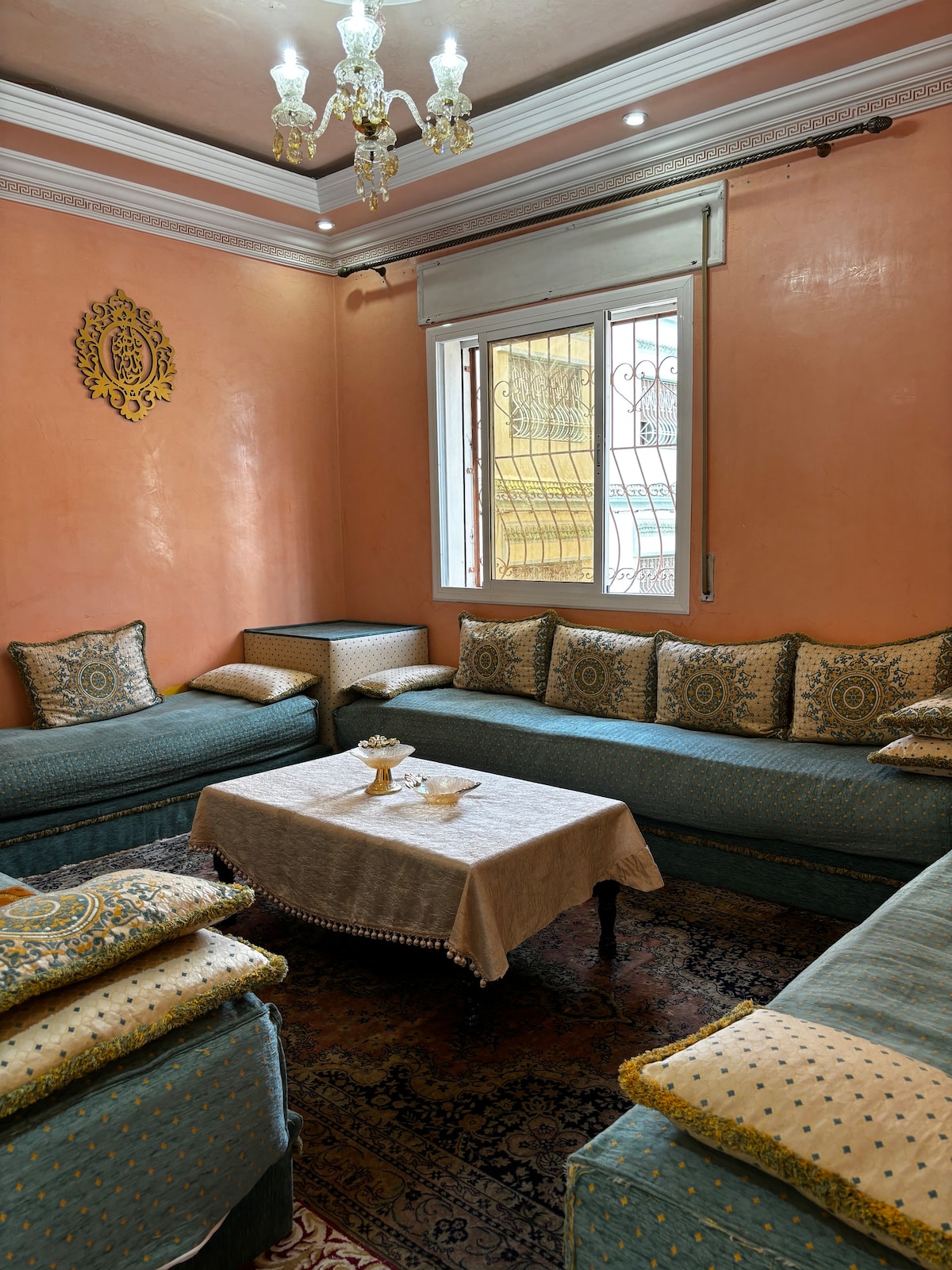 Welcome to our charming 3-bedroom apartment nestled in the vibrant heart of Tangier's hyper center. All necessary amenities are available: Air-conditioning, Smart Tv, Netflix, fiber-optic internet connection, coffee machine, towels, shower amenities, etc Located on the last floor of the building with elevator access, you are just a few stairs away to access the incredible rooftop and admire breathtaking views of Tangier, Spain, the straits of Gibraltar and the mountains of Chefchaouen.