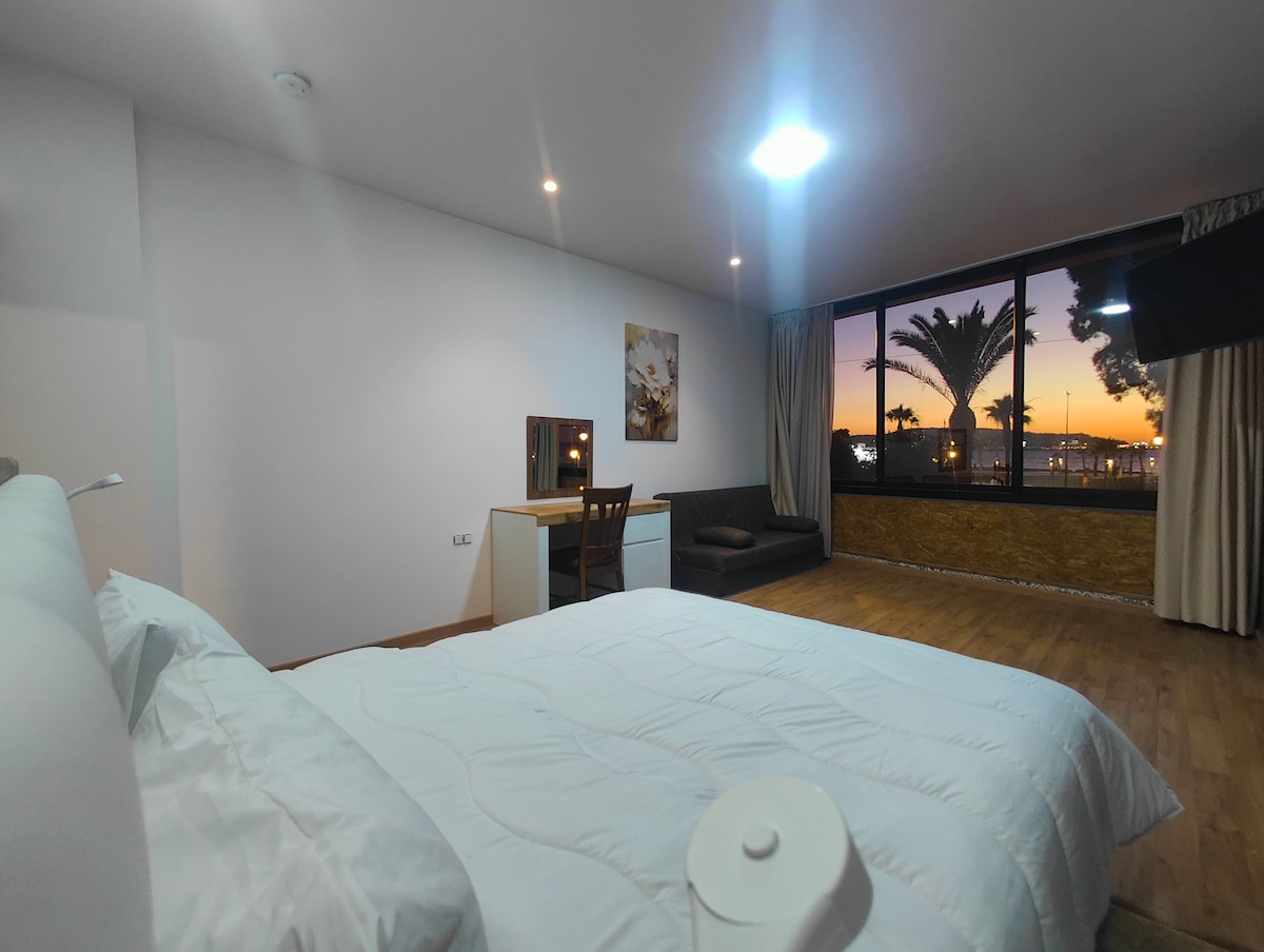 enjoy a cozy and bright room with a stunnig sea view ; perfect for relaxing after a day out : the space is clean; comfortable ; peaceful atmosphere and beautiful sunsets m ideal for solo travels or couples looking for a calm and comfortable stay in a great location.