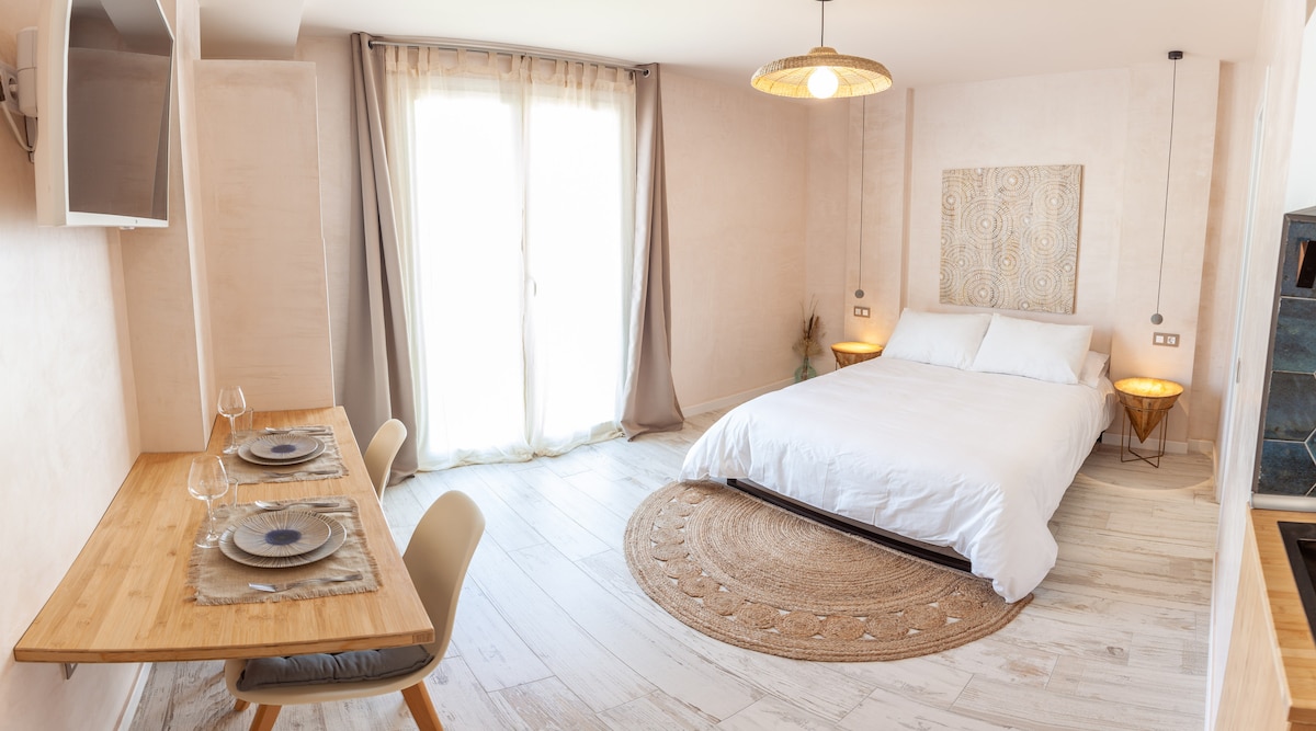 Loft nuevo muy iluminado y funcional con terraza particular y acceso privado al edificio. Situado en zona residencial muy tranquila y cerca de la calle principal de tiendas. Estamos a 5 minutos del casco antiguo y a 10 minutos de la playa de los lances, desde la terraza se puede ver el mar. Cocina y baño totalmente equipados, menaje completo, toallas, sabanas y mantas para cuatro personas. Apartamento ideal para parejas o hasta cuatro personas.