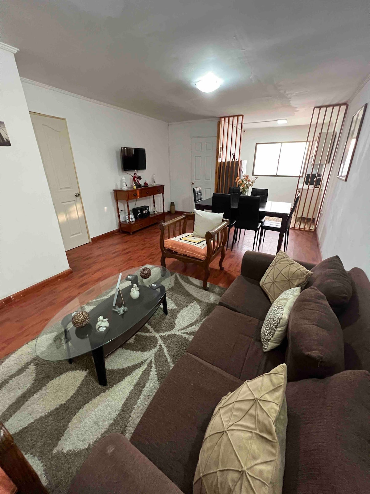 Cómodo y familiar donde podrá disfrutar de independencia en su descanso. A pasos de Playa Cavancha. Son dos habitaciones, una matrimonial y otra doble. Matrimonial (valor $50.000), tres personas ($60.000) y cuatro personas ($70.000 en total). Wifi disponible, zona tranquila, céntrica, cerca a supermercados, restaurantes, estación de servicios, clínica, parque infantil y el maravilloso borde costero y playa.