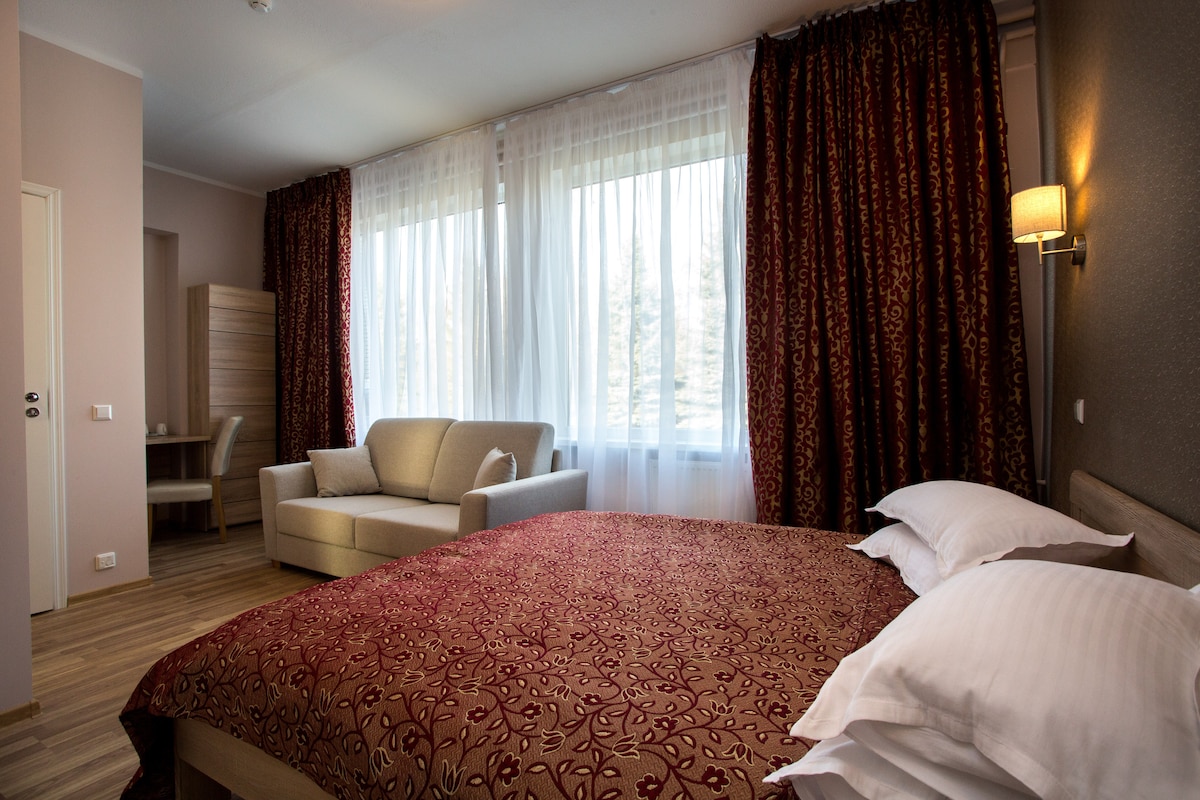Pere- ja noortesõbralik majutuskeskus, kus on teretulnud ka pere neljajalgsed sõbrad. Majutuskoht asub linna servas kuid maja eest lähevad iga 10 minuti tagant linnaliini bussid kesklinna. Piirkonnas on kergliiklusteed ja palju kaupluseid. Mõnusas peretoas ootab teid TV, tasuta WIFI, mõnus Queen size kaheinimese voodi. Lisaks on võimalik magamiseks kasutada toas olevat diivanvoodit mis käib lahti. Privaatses vannitoas on dušš ja WC.