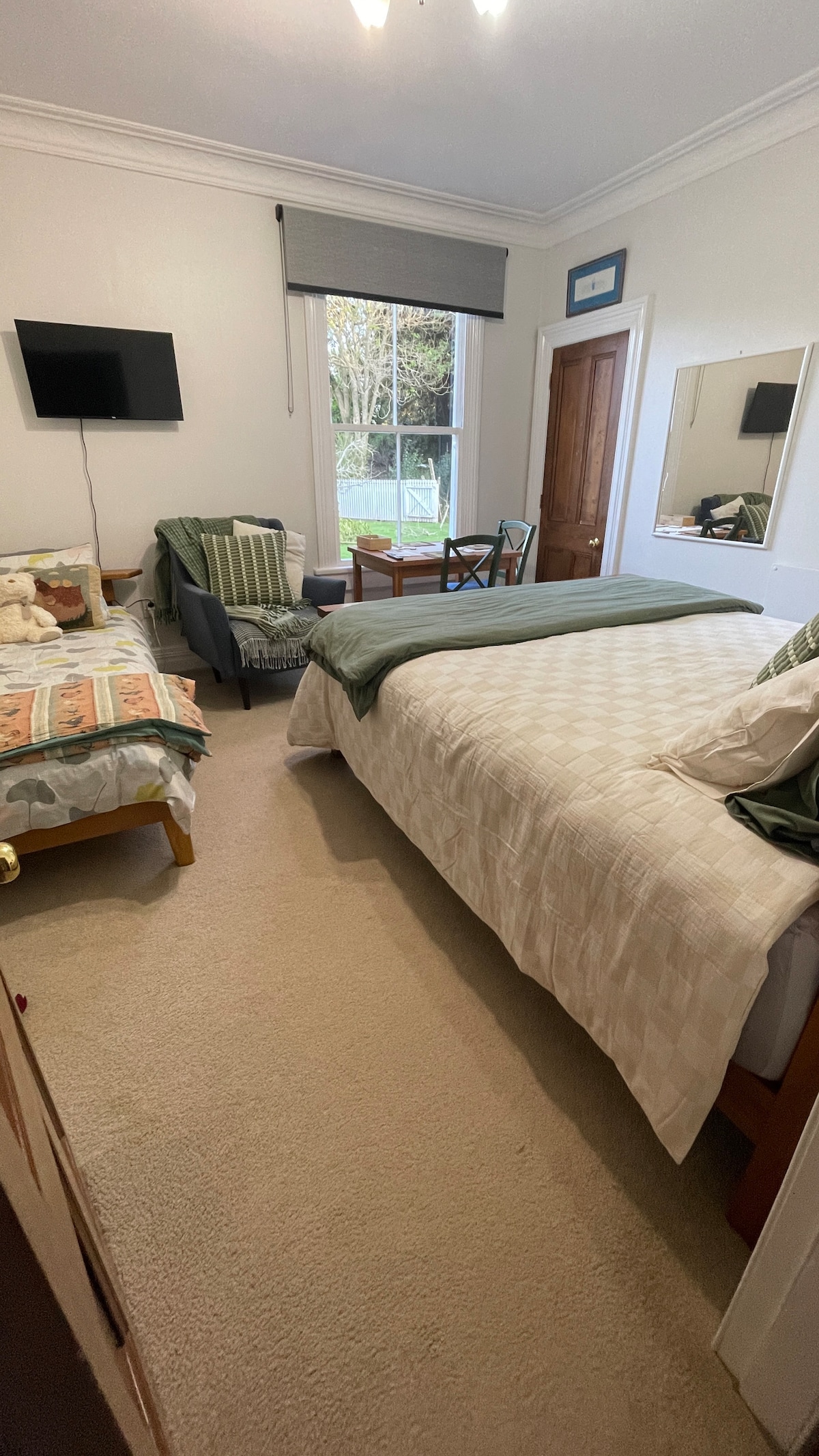 Welcome to The Chook Nook! We have a lovely Colonial-style home set on a small rural property close to the CBD and concert venues and only 20 minutes drive to the Mount Beach. Your room has a top quality king-size bed, single bed and your own bathroom and toilet - no sharing! A delicious continental-style breakfast is provided and there is home baking to welcome you. Mineral hot pools only 3 minutes drive away too! We love to meet new people and share all that our beautiful city has to offer.