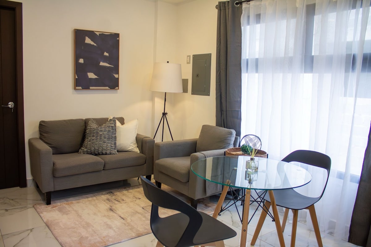 Apartamento finamente amueblado y confortable. Contamos con todas las amenidades necesarias para hacer que tu visita sea placentera. Ubicado en Ecodistrito cerca de la Villa Olímpica, Estadio Chochi Sosa, Coliseo Nacional de Ingenieros y de la UNAH; cuenta con una vista espectacular hacia la Basílica de Suyapa. A tan solo 3 minutos caminando encontraras supermercado y una plaza con variedad de restaurantes. Disfruta de una experiencia con estilo en este alojamiento céntrico.